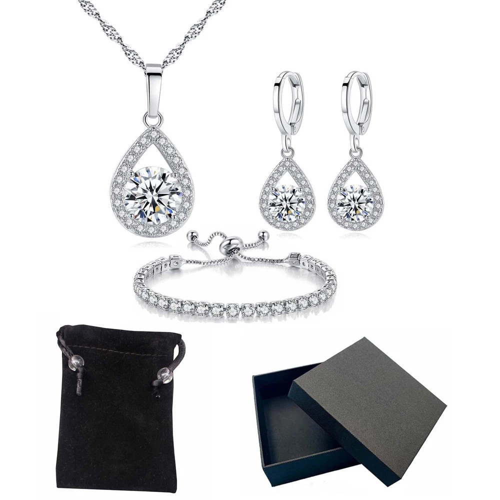 Necklace Pendant and Earrings cubic zirconia Bangle Set Crystal Silver Fashion Adjustable Chain Jewelry for Women Wife Party Prom Engagement Wedding Gifts Product Details Color: silver Brand: kai bao city UPC: 796647454725 EAN: 0796647454725 MPN: Does not apply Department : womens Date First Available : October 9, 2022 Manufacturer : kaibaochengdianzikeji Brand, Seller, or Collection Name: kai bao city Metal: Copper Material: Metal Gem Type: No Gemstone Setting: Half-Eternity-Setting Clasp: Lobster Clasp Ring size: adjustable Products include: 1 x Necklace 2 x earrings 1 x Bracelet 1 x Black storage bag 1 x Packing box