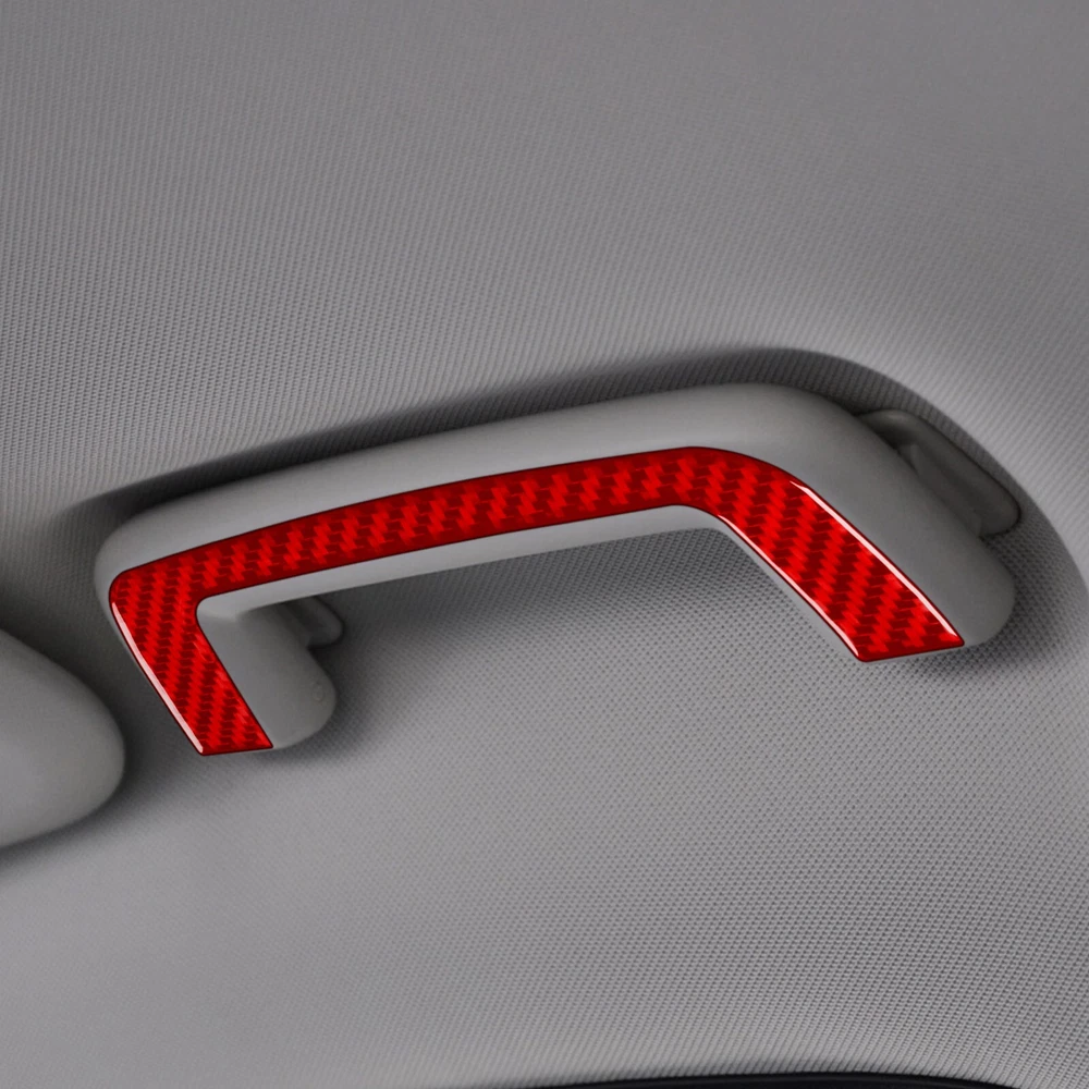 Cubierta de panel de manija de techo interior de fibra de carbono roja para Ford Focus 2012-2018