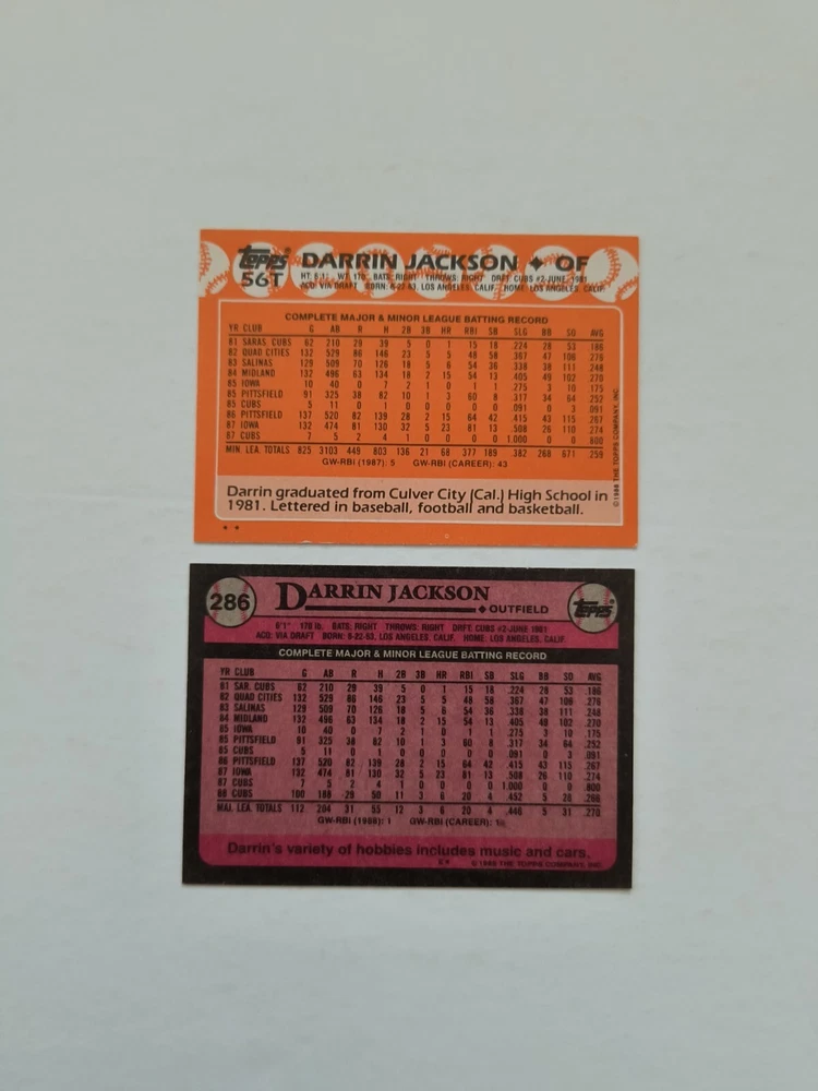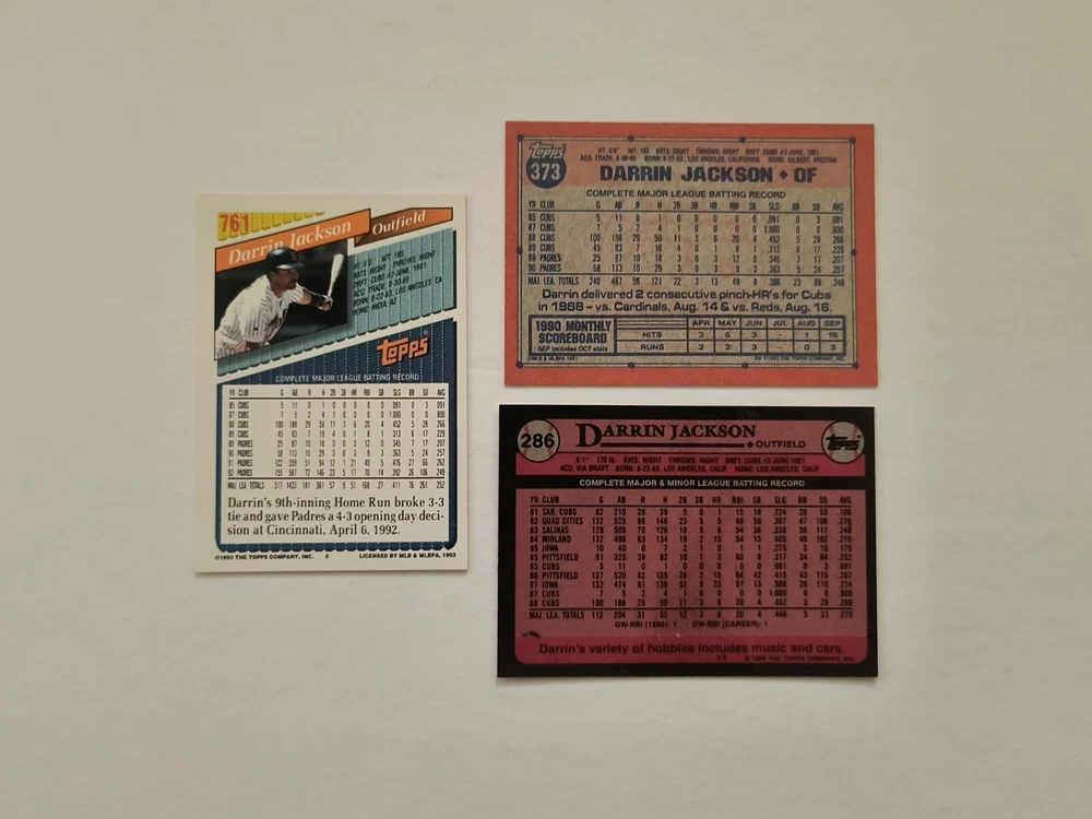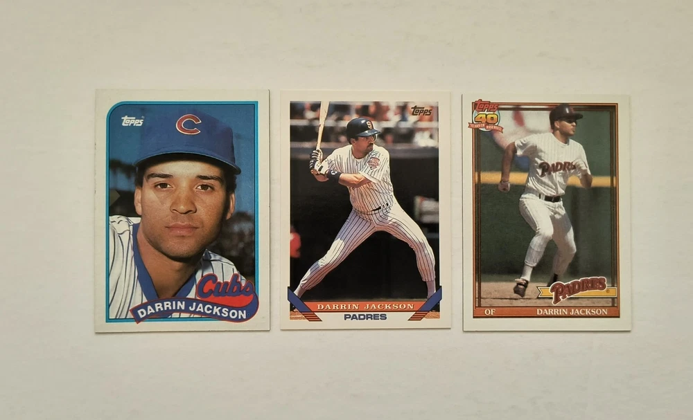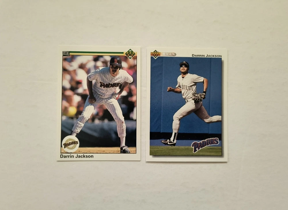 12 Darrin Jackson baseball cards Highlights: 4 Rookie Cards These cards will be shipped in an envelope with stamps, and sent non-machinable. The cards will have protection so that they are safe during delivery.