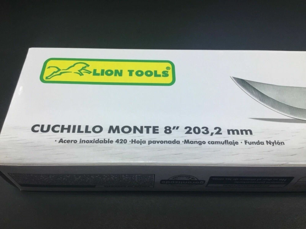 Cuchillo Monte 8” Knife w/ Nylon Sheath & Original Box 9406 By Lion Tools New Due to multiple quantity. Item might look slightly different from pictures. Box has very few minor damage. Will ship in a sturdy uline box. We normally ship within 1 day or same day. We may have 2 days handling time in case of emergencies. But 1 day or same day is our normal shipping time. We also do combined shipping