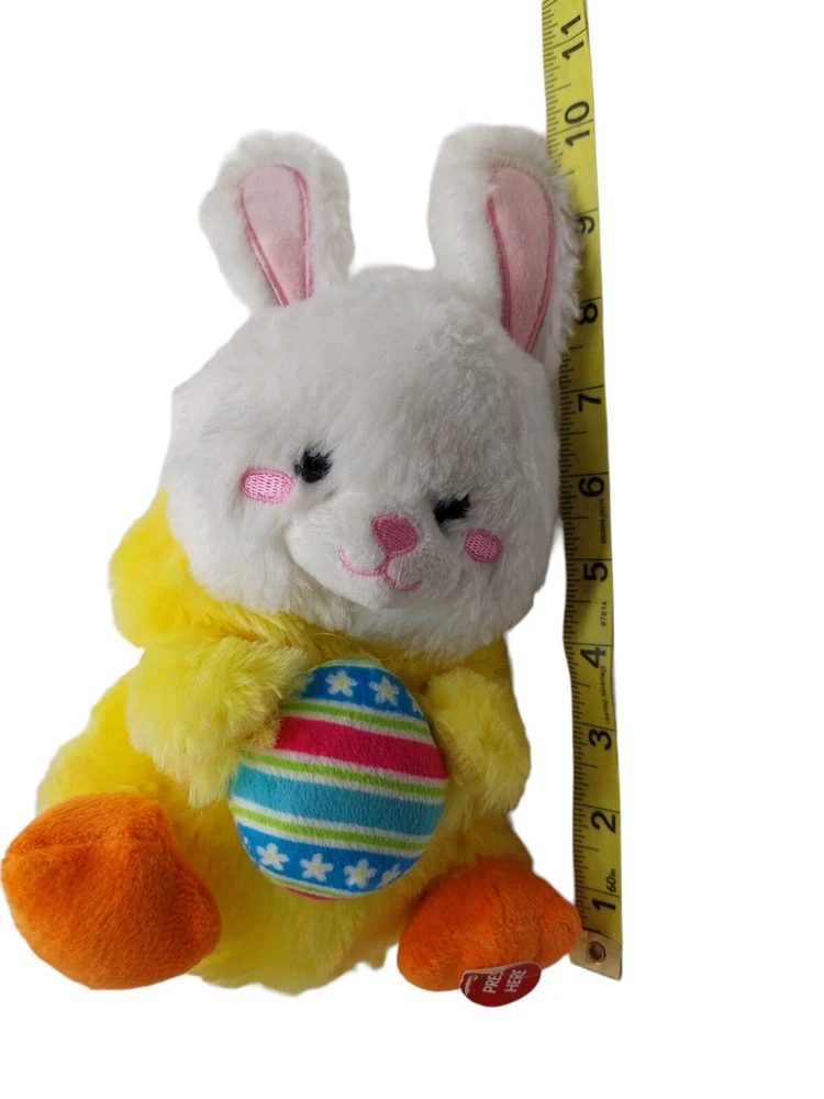 Cuddle Barn Easter Bunny Talking Plush Toy White Rabbit in Chick Costume 9".