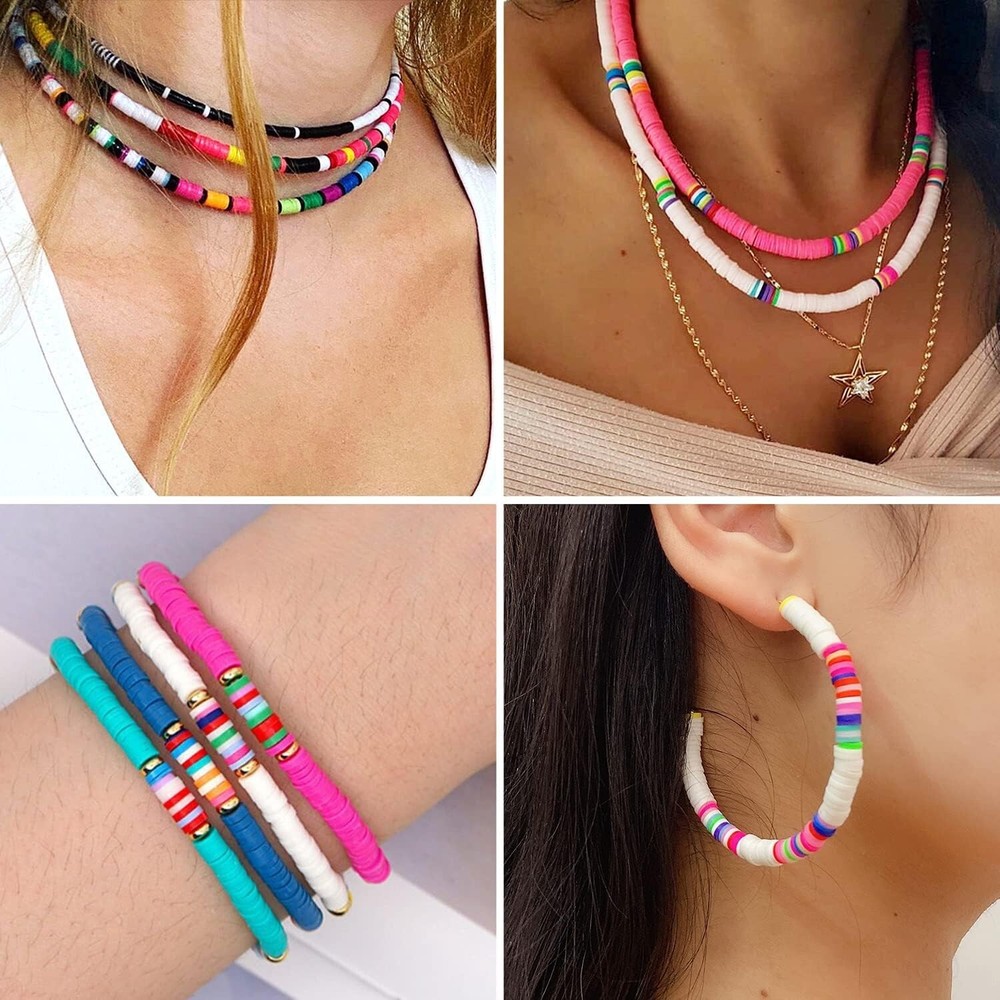 Kit de cuentas Heishi: Hemos seleccionado 3 colores clásicos para satisfacer tus necesidades. Una tira de cuentas de arcilla mide aproximadamente 6 mm de diámetro y cada soporte contiene aproximadamente 320 piezas. Las cuentas Heishi son ligeras e impermeables. Son muy suaves y fáciles de colocar. Puedes crear una variedad de estilos. Material premium: Estas cuentas redondas y planas están hechas de arcilla polimérica ecológica. Su superficie es lisa y vibrante. Evita comerlas como si fueran dulces por error. Cuentas combinables: También puedes combinar nuestras cuentas de arcilla polimérica con cuentas de disco de otros colores, cuentas con letras, cuentas de concha, cuentas arcoíris, cuentas turquesa o cuentas pony para añadir belleza visual y crear una variedad de estilos. 【Disfruta haciendo joyas tú mismo】Kit de aproximadamente 2100 cuentas espaciadoras de arcilla polimérica, puedes usarlas para hacer tu pulsera, arete y collar únicos y hermosos. Perfecto para proyectos de mujeres, me he divertido mucho haciendo manualidades y joyas con ellas. 【Regalo perfecto】Estas cuentas heishi de arcilla son el mejor regalo para amigos, compañeros de clase, vecinos o familiares, pueden compartir la diversión del bricolaje juntos e intentar crear algunas artesanías encantadoras hechas a mano, agregando más diversión a la vida diaria.