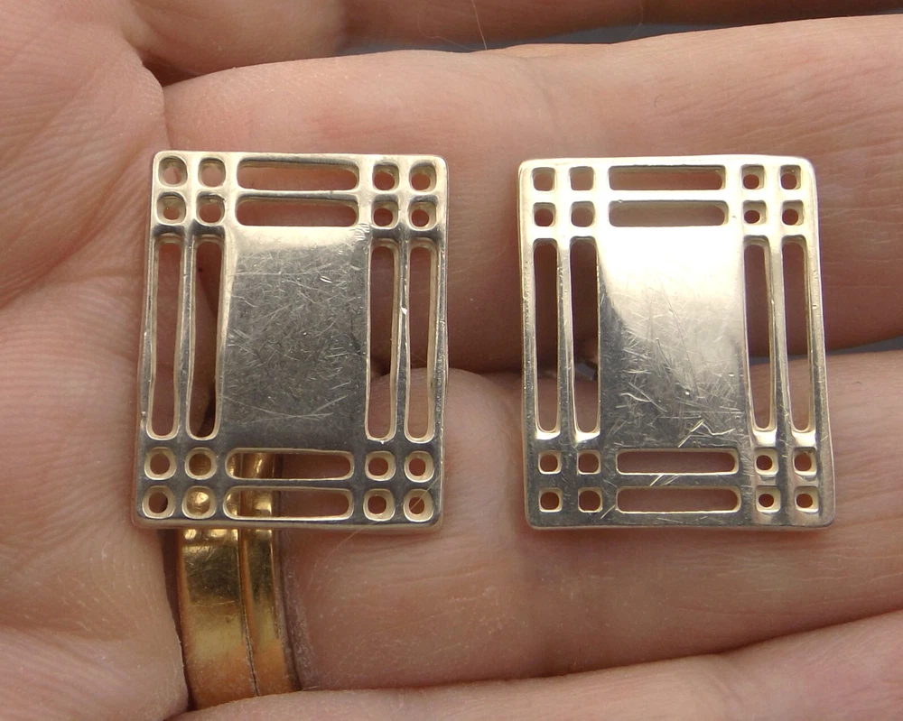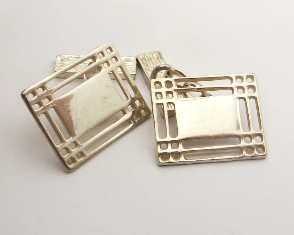 STERLING SILVER CUFFLINKS OBLONG SHAPE SIMPLE RENNIE MACKINTOSH STYLE DESIGN BY CARRICK JEWELLERY LTD CHAIN LINK MARKED 925 FOR STERLING SILVER AND CJL FOR CARRICK JEWELLERY LTD EACH CUFFLINK FRONT MEASURES 15 X 20 MM 9/16" X 13/16" VERY GOOD USED CONDITION Will be sent in a new cufflink box Always happy to combine postage, just let us know when you are finished and we will send a combined invoice. We post every day Monday to Friday, and try to post same day or next day - happy to post Saturday if you ask! We mainly sell used items, so there may be wear, but we try to describe accurately - we might occasionally miss something or even completely mess things up - we are human - but never intentionally and will always try to resolve any issues. Contact me via eBay messages if you have any concerns with your purchase. Please be aware if buying outwith the UK your purchase will have to go through your country’s Customs on arrival - you may be charged import duty and possibly other charges, any such charges are not covered in this sale. Any questions, just contact us via messages, we will get back to you as quickly as we can.