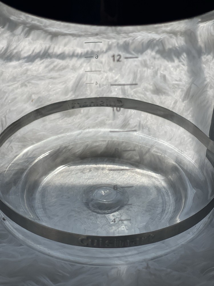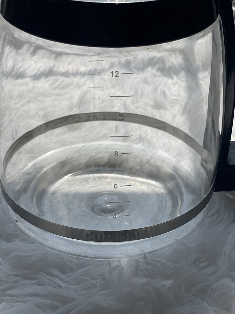 This Cuisinart Glass Coffee Pot Carafe is the perfect replacement for your old DCC-1200PRC or DGB-550BK coffee machine. With a capacity of 12 cups, it is suitable for both filter coffee and bean-to-cup coffee. Its lightweight and easy-to-clean features make it a great addition to your kitchen. The carafe is dishwasher safe and has a power of 1200W. The black color and glass material add a touch of elegance to your coffee machine. It is compatible with various models of Cuisinart coffee machines, including the DGB-700BC, DGB-625BC, DCC-500, DCC-1200, DCC-2850, CHW-12, and DCC-2650. The item height is 7.5 inches, and the item width is 8 inches. Enjoy your coffee in style with this high-quality replacement carafe. Preowned Does have minor scuffs or scratches on the top from use *mineral deposits under the handle and discoloration under band from washing Ready to use All actual photos *Please check photos for details and condition