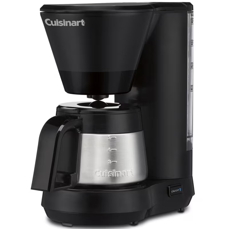 Title: Cuisinart 5-Cup Coffeemaker with Stainless Steel Carafe Black DCC-5570NAS Description: Cuisinart compact 5-cup coffeemaker designed for small households, apartments, offices, or anyone who prefers smaller batches of freshly brewed coffee. Features a durable stainless steel thermal carafe that helps keep coffee warm without the need for a hot plate. The streamlined countertop design offers simple operation and reliable everyday performance. Features: • 5-cup brewing capacity • Stainless steel thermal carafe • Compact, space-saving countertop design • Designed for consistent and even brewing • Easy-to-use controls • Ideal for small kitchens, offices, or personal use • Modern black finish Specifications: • Brand: Cuisinart • Model: DCC-5570NAS • Product Type: Coffeemaker • Capacity: 5 Cups • Carafe Type: Stainless Steel (Thermal) • Color: Black • Power Source: Electric • Application: Kitchen / Countertop • Intended Use: Residential / Light Office Buy With Confidence: Buy With Confidence Fast handling, secure shipping, and responsive customer support — shop with confidence knowing you’re buying from a reliable seller committed to quality and transparency. If you have any questions, please feel free to reach out. We always take care of our buyers and are committed to providing a smooth and reliable shopping experience.