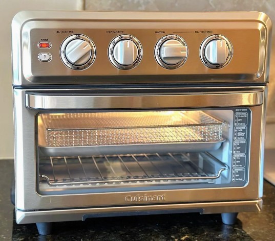 The Cuisinart Air Fryer Toaster Oven with Grill is a versatile kitchen appliance that combines the functions of a toaster oven and an air fryer in one stainless steel package. With a power source of 1800W and a voltage of 120V, this electric appliance is perfect for cooking and heating up delicious meals. The sleek silver color and stainless steel finish make it both stylish and durable for everyday use. Additionally, the included grill and timer features add to its functionality, making it a convenient addition to any kitchen. Made in the United States by the reputable brand Cuisinart, this toaster oven is a must-have for any home chef.