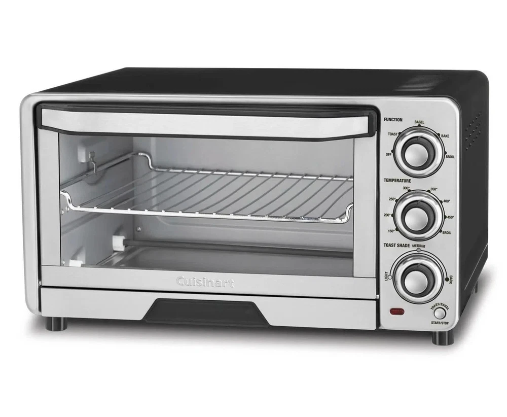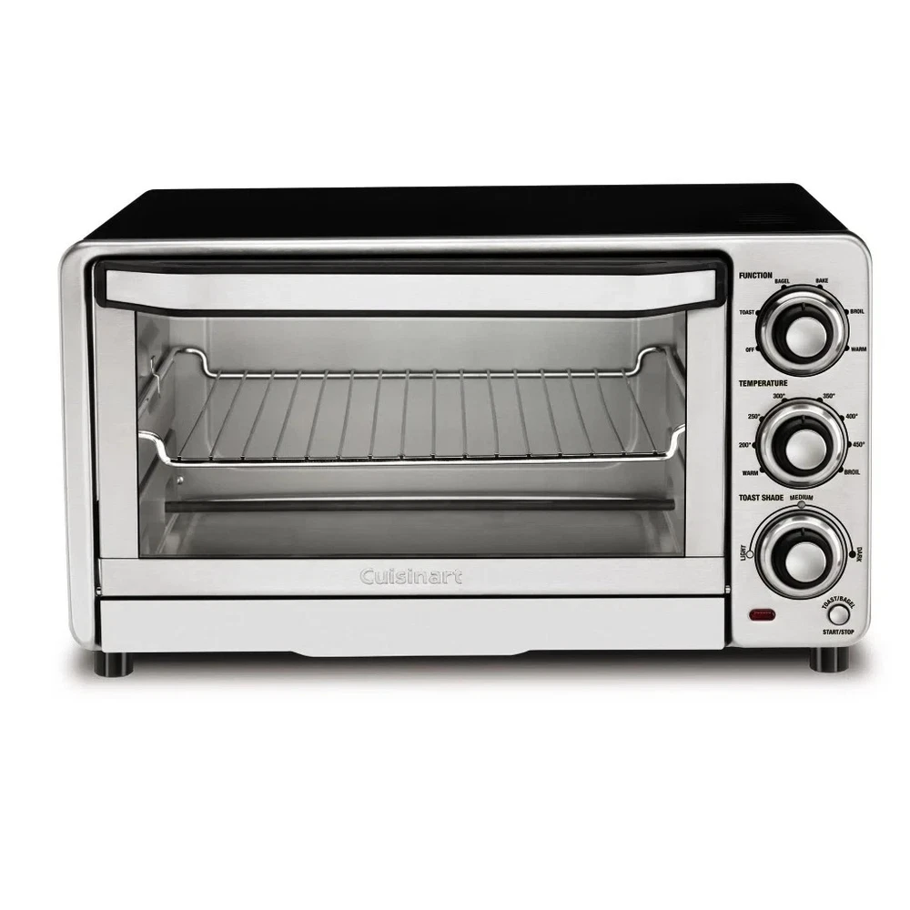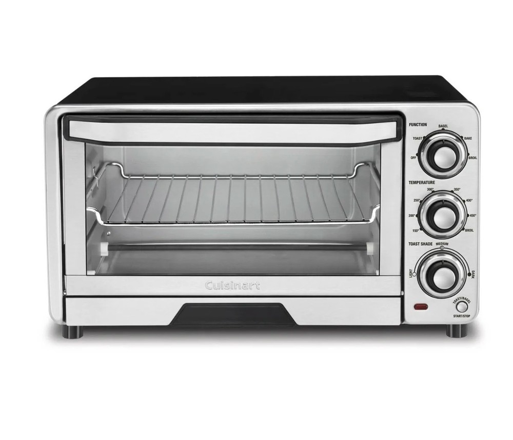 This toaster oven broiler is a powerful 1800-watt oven that enables you to toast, bake and broil. It has a stainless steel front with rubberized easy-grip dials and a cool-touch handle. The full-size interior holds a pizza and 6 slices of bread. A convenient automatic slide-out rack provides for hands-free loading and easy removal of foods. The always-even shade control browns toast to the shade selected every time. Other features include an easy-clean nonstick interior and a front removable crumb tray.