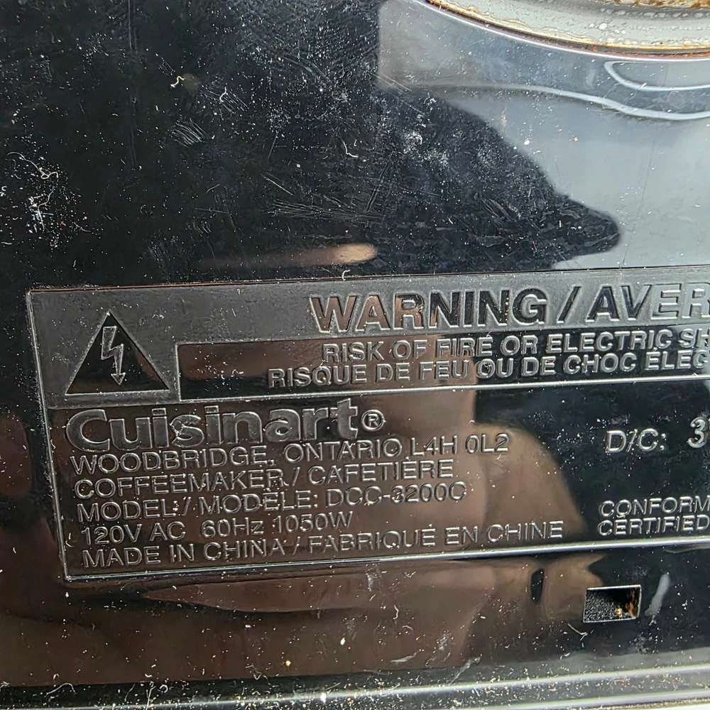 Cuisinart 14-Cup Programmable Coffee Maker, model DCC-3200C. The unit has been tested and works properly. Heats, brews, and all buttons respond as expected. Features a 14-cup capacity, programmable timer, brew strength control (Regular/Bold), self-clean function, and carafe temperature control. Stainless steel finish with a modern design. Condition: Good pre-owned condition. Shows normal signs of use such as light scratches and coffee residue (see photos for exact condition). Features & Specs: Brand: Cuisinart Model: DCC-3200C Capacity: 14 cups Programmable auto-brew Brew strength control (Regular / Bold) Self-clean function Carafe temperature control Voltage: 120V / 60Hz Included: Coffee maker base Thermal carafe with lid Built-in filter basket (No paper filters included) Item will be safely packaged and shipped promptly. Please feel free to message me with any questions.