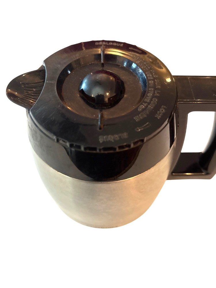 No longer will your coffee's warmth be as fleeting as your enthusiasm for morning exercise. This carafe keeps it steaming hot until you're ready to caffeinate and conquer. It's like a cozy blanket for your brew—minus the fluff. • Fits 10-cup coffee maker • Thermal insulation • Secure black lid • Comfortable handle Cuisinart DCG-600RC 10-Cup Replacement Thermal Carafe with Lid, Compatible with Cuisinart Coffeemakers, Stainless Steel Minor scratches on the body, lid in good condition. Size: 10 Condition: Pre-Owned Good