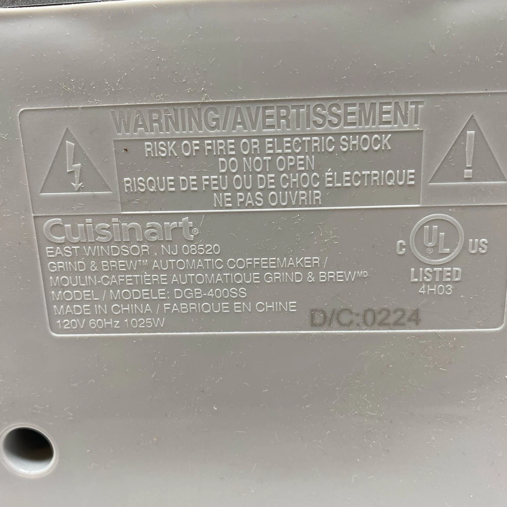 Condition: Used - Good The item has cracks The item has dirt, stains and/or discoloration See photos for full visual reference Model: Cuisinart DGB-400SS Grind & Brew 12-Cup Coffeemaker Stainless/Gray At Unturned, we were shocked to discover how many perfectly functional returns were being wasted. That's why we made it our mission to offer these e-commerce returns—often overlooked and discarded—at unbeatable prices. We carefully inspect and test all our products to ensure quality and accurately describe their condition. However, if you receive an item that does not match the description or meet expectations, please reach out, and we will make it right!