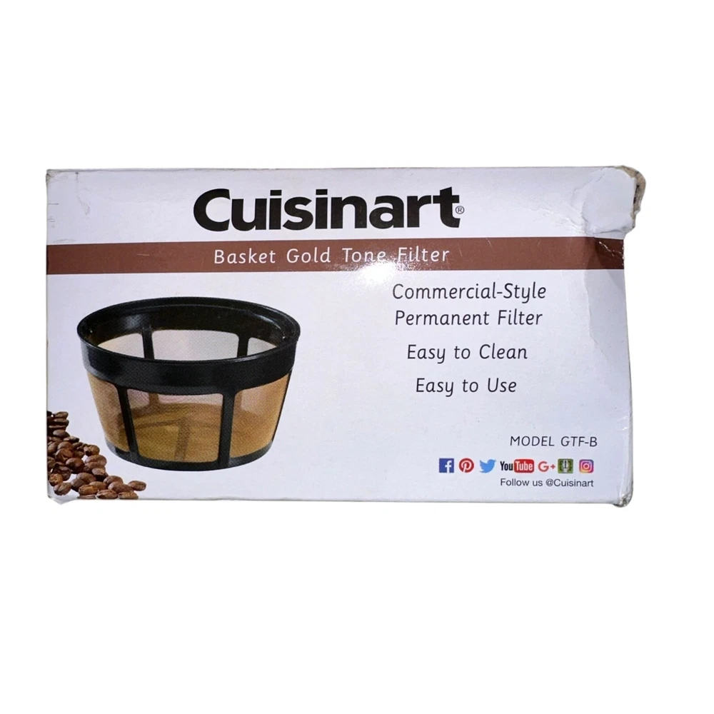 Features: • Brand: Cuisinart • Type: Replacement Parts • Style: Permanent Gold-Tone Commercial-Style Filter • Line: DGB-850 Burr Grind Brew 10 Cup Coffeemaker • Made in Unknown • Color: Black, Gold • Condition: Brand New, Open Box • THIS PART IS ONLY DESIGNED TO FIT THE MODEL NUMBER LISTED ***THE ONLY PIECE(S) INCLUDED IN THIS LISTING ARE WHAT IS IN THE PICTURES*** Orders shipped within 1-2 business days. 0128012501