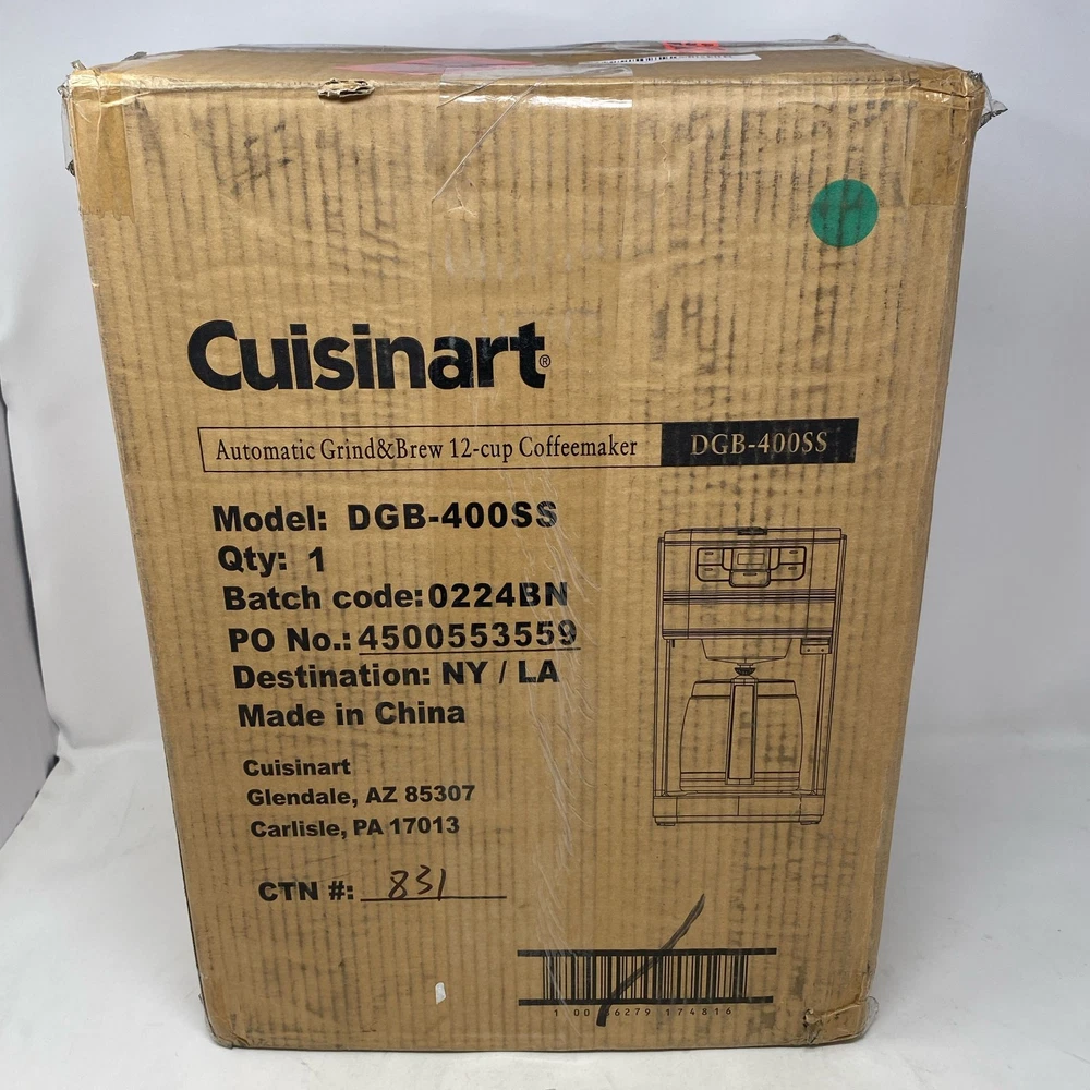 Condition: New - Open Box See photos for full visual reference Model: Cuisinart Grind & Brew 12-Cup Coffeemaker DGB-400SS, Gray/Stainless At Unturned, we were shocked to discover how many perfectly functional returns were being wasted. That's why we made it our mission to offer these e-commerce returns—often overlooked and discarded—at unbeatable prices. We carefully inspect and test all our products to ensure quality and accurately describe their condition. However, if you receive an item that does not match the description or meet expectations, please reach out, and we will make it right!