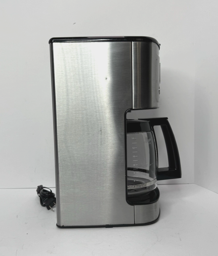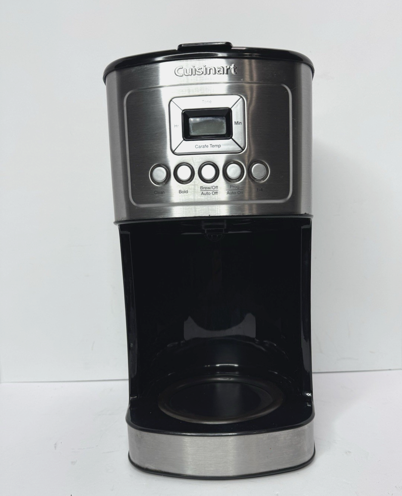 Cuisinart PerfectTemp 14-Cup Programmable Coffee Maker - DCC-3200P1 Minor use. Has marks/scratches. Refer to photos. As shown in generic box. Enjoy Hotter Coffee: Utilize expert coffee-making technology to ensure your coffee temperature is perfect, delivering a delightful taste experience without compromising flavor or quality. Brew Strength Control: Tailor your coffee flavor to perfection by choosing between regular or bold settings, catering to your unique taste preferences with every brew. Fully Automatic Coffee Brewer: Experience convenience with 24-hour program ability, offering flexibility with 1-4 cup settings, auto-off functionality (0-4 hours), and an optional ready alert tone for added convenience. 14-Cup Glass Carafe: Indulge in generous servings of coffee with a sleek glass carafe featuring a decorative stainless-steel handle and matching body, creating a stylish addition to complement your kitchen appliances Fill with Ease: Enjoy accurate water filling through the easy-to-view water window, while Cuisinart's Brew Pause feature allows you to savor a cup of coffee before the brewing cycle completes, enhancing your coffee-drinking experience