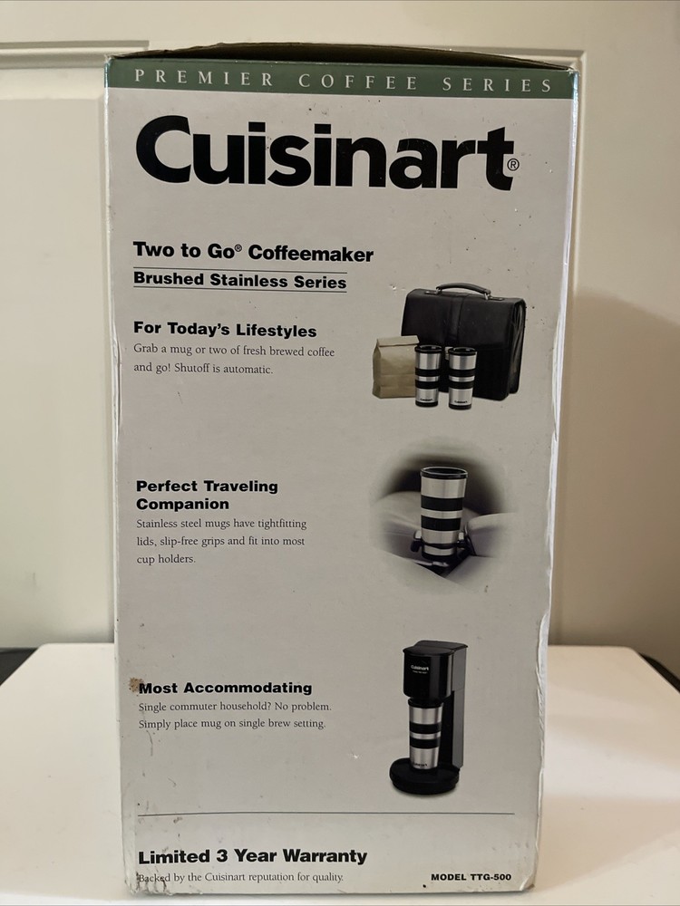 Cuisinart TTG-500 Two To Go Coffeemaker w/ Two 14oz Mugs - New Open Box Item is brand new, open box. Please SEE PHOTOS for item condition and further item details.
