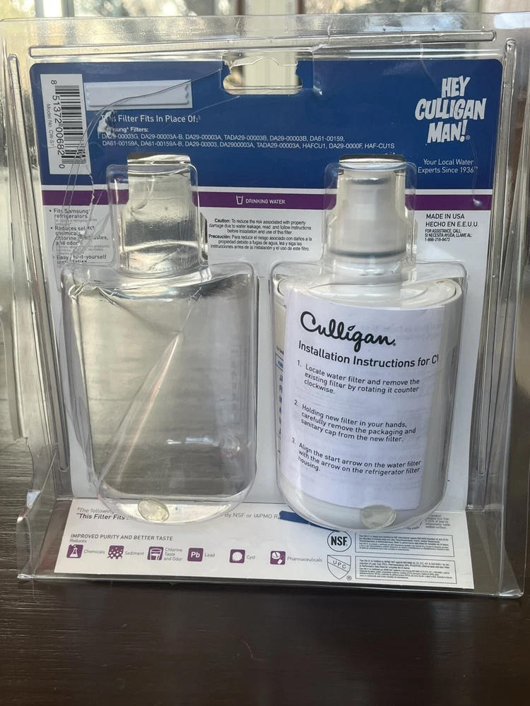I have a Culligan CW-S1 water filter for a Samsung refrigerator up for sale. This is the replacement filter for the Samsung HAF-CU1S water filter. It is in an open two pack container but it has never been used. I will gladly answer any questions concerning this item. Thank you for looking.