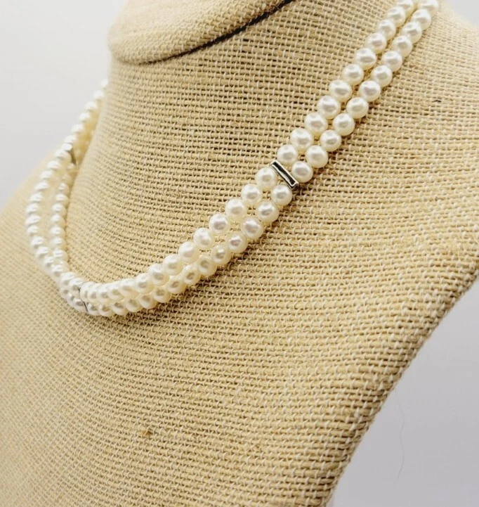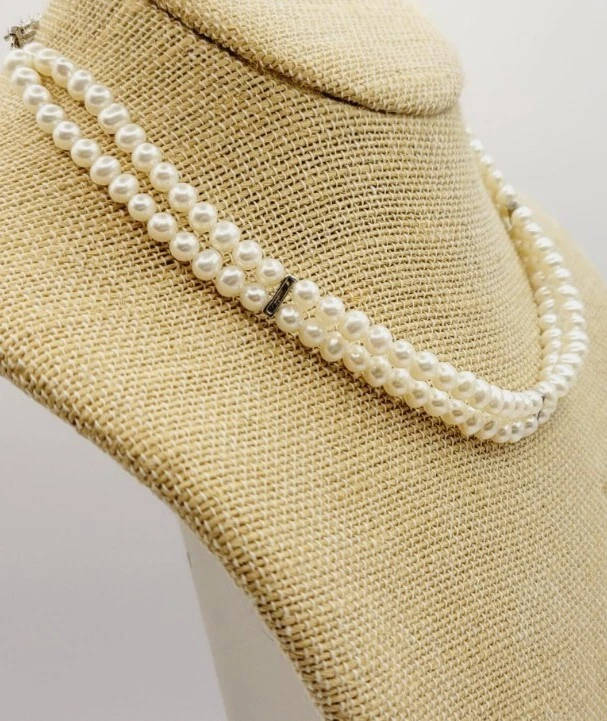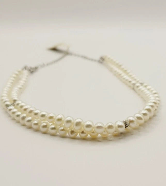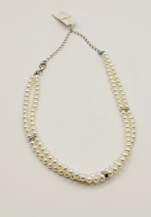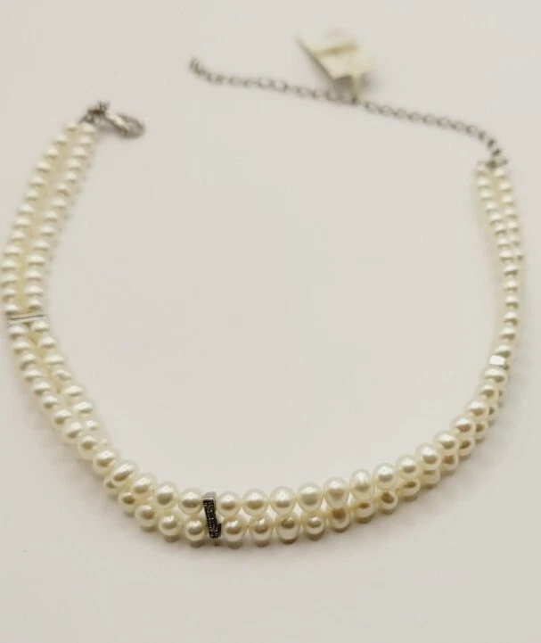 Cultured Pearl Choker Necklace New $130 Double Row Crystal Accent