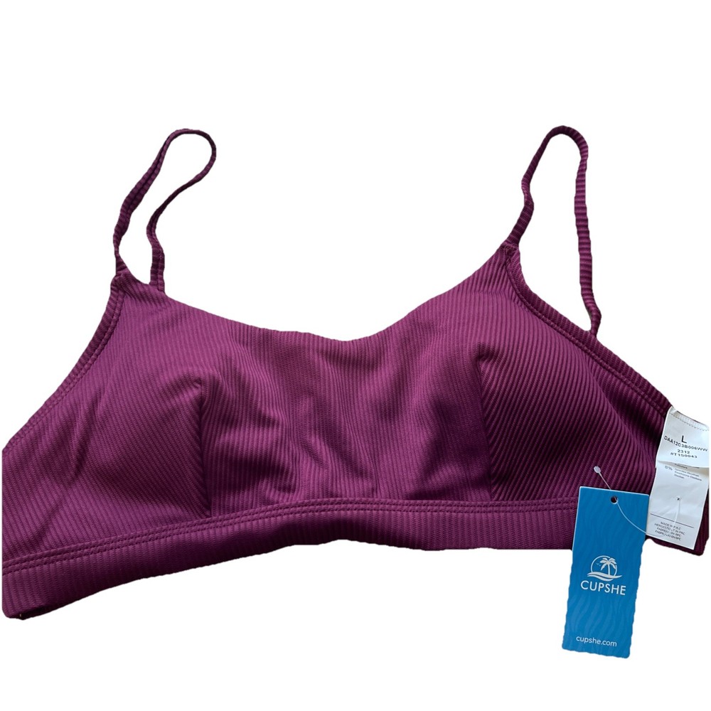 B18-0008: The Cupshe Women's 2-piece Bikini Bathing Suit in size Large is a stylish and flattering swimwear option for women. The burgundy color adds a pop of color to your poolside or beach look. The set includes a top and bottom, making it easy to mix and match with different pieces to create a variety of bikini outfits. Made by the brand Cupshe, known for their quality and trendy designs, this bikini is sure to become a staple in your summer wardrobe.