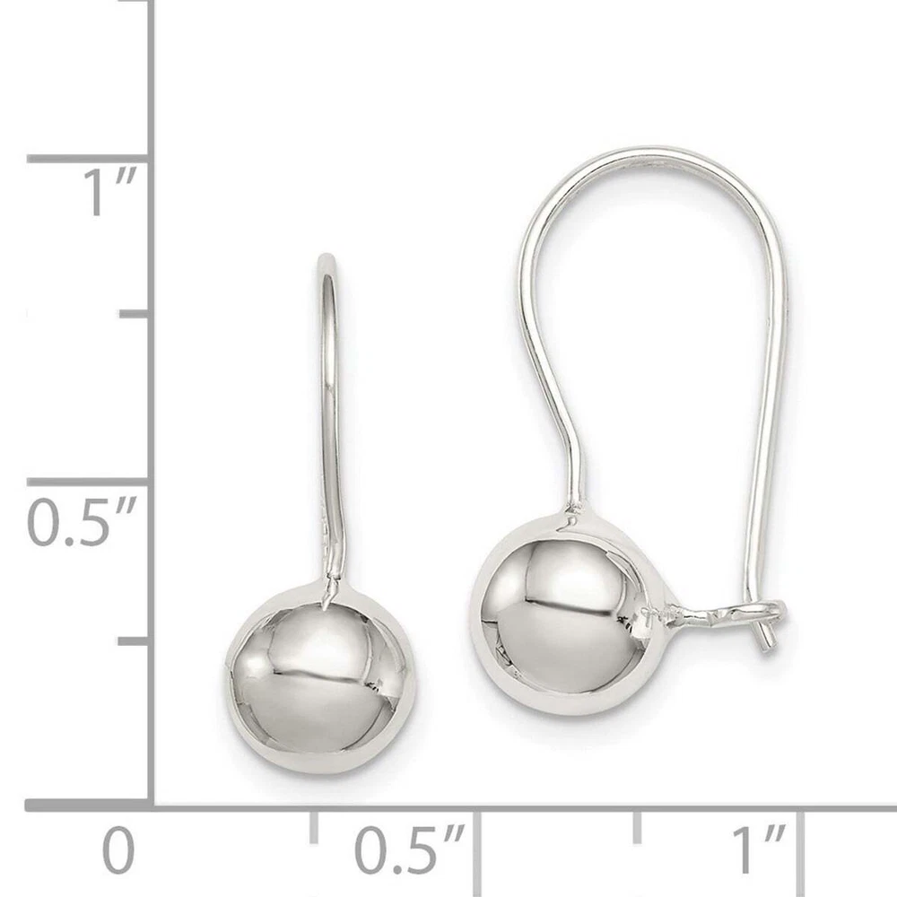 Sterling Silver 8mm Ball Earrings - 2.0 Grams in Sterling Silver - Product Attributes: - Kidney wire - Polished - Width of Item: 8 mm - Length of Item: 20 mm - Earring Closure: Kidney Wire - Earring Type: Drop & Dangle - Finish: Polished - Feature: Hollow Kidney wire ; Polished - All of our jewelry for women and men are authenticated with a 10K or 14K hallmark and are tested to pass FTC regulations. Free Shipping Over $49.99* Details Curata 925 Sterling Silver Polished 8x20mm Kidney Wire Ball Earrings Product Description: Sterling Silver 8mm Ball Earrings - 2.0 Grams in Sterling Silver - Product Attributes- Kidney wire - Polished - Width of Item8 mm - Length of Item20 mm - Earring ClosureKidney Wire - Earring TypeDrop & Dangle - FinishPolished - FeatureHollow Kidney wire ; Polished - All of our jewelry for women and men are authenticated with a 10K or 14K hallmark and are tested to pass FTC regulations.