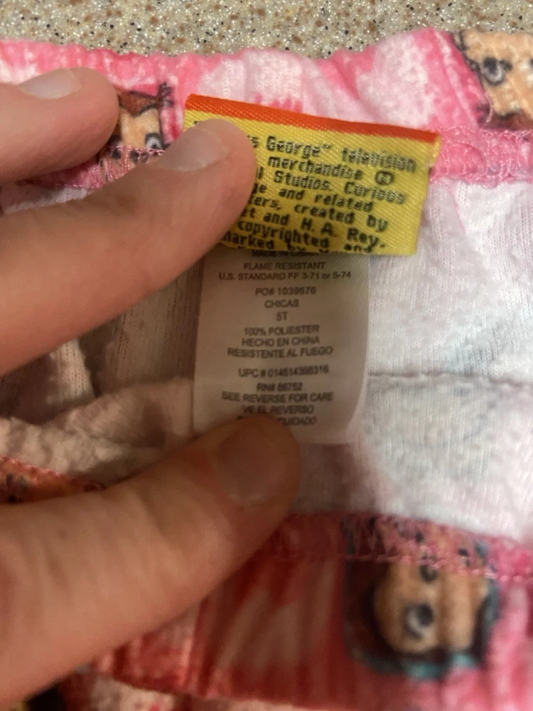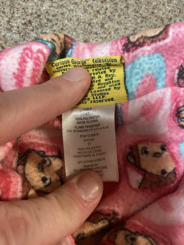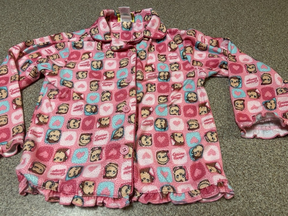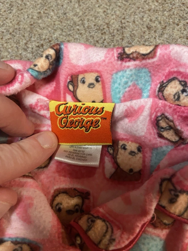 This Curious George Girls' Pajama Set in vintage rare size 5 is a charming addition to any young fan's sleepwear collection. The pink long sleeve button-up top and matching bottom feature the beloved Curious George character design, making it perfect for winter and spring seasons. Made from 100% polyester, this two-piece set is machine washable for easy care and is sure to delight any little girl with its whimsical charm.