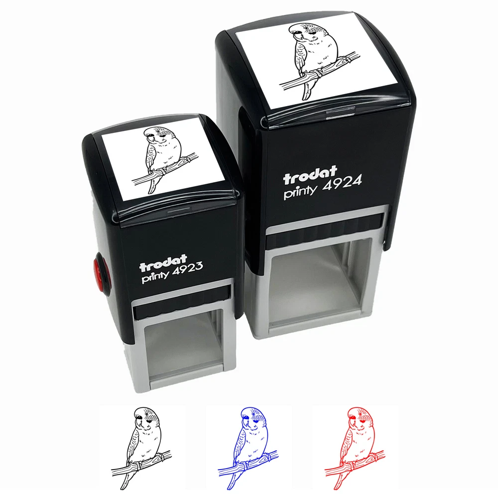 Curious Parakeet Budgie on a Branch Self-Inking Rubber Stamp Ink Stamper