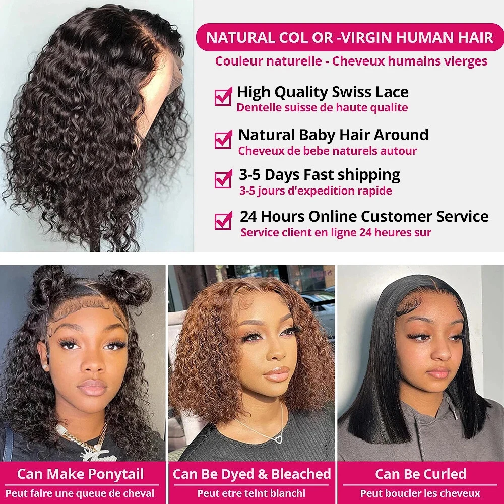$ 75.9Curly Lace Front Wig Pre Plucked Human Hair Glueless Short Bob