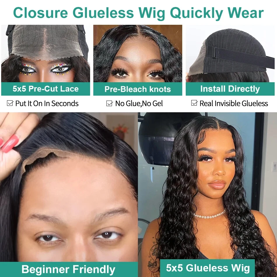 Curly HD Transparent 5x5 Glueless Ready To Wear Wigs Lace Front Human Hair Wigs