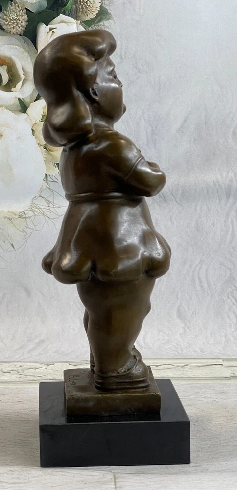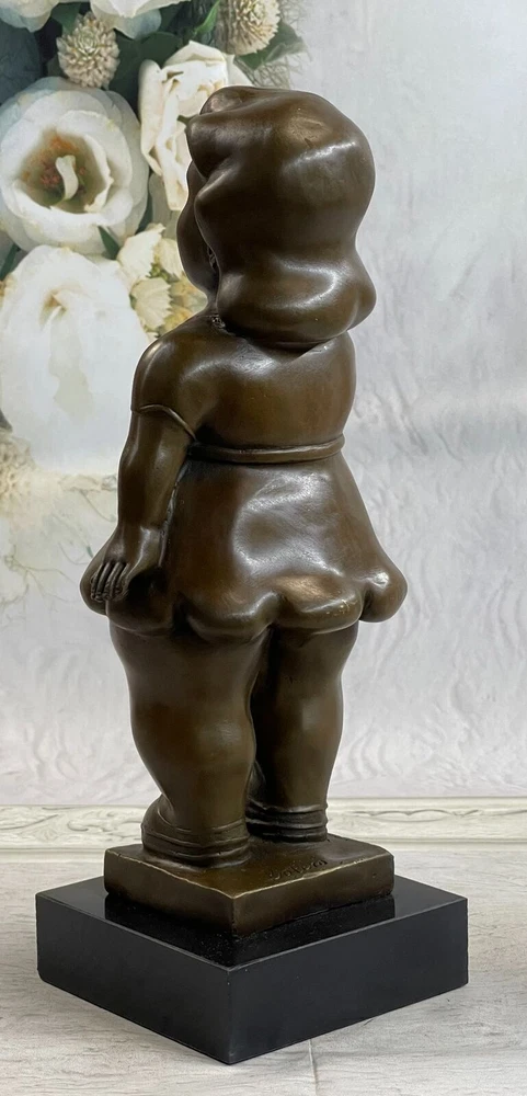 Curvaceous Nude Abstract Lady Bronze Sculpture Signed Botero Statue Gift Figure Curvaceous Nude Abstract Lady Bronze Sculpture Signed Botero Statue Gift Figure Condition : This sculpture is in perfect condition. Bronze Dimensions with Marble Base: Height 13" X Width 4 1/2" Marble Dimensions:4 1/2" X 4 1/2" Height without base:12" Weight:10 LBS Inventory:49Y2224694 This remarkable bronze sculpture, created by the renowned artist Fernando Botero, is a true masterpiece that encapsulates the essence of his unique style. Botero is celebrated for his distinct approach to art, characterized by the exaggeration of form and the playfulness of his subjects. In this piece, a plump and generously proportioned young girl stands as a delightful representation of Botero's artistic vision. Her rounded and curvaceous figure draws the viewer's attention, inviting exploration of the sculpture's tactile surfaces. Crafted using the traditional "Lost Wax Method," this sculpture exhibits exceptional craftsmanship and attention to detail. The rich brown patina finish not only enhances the artwork's visual appeal but also ensures its longevity. Resting gracefully on a black marble base, this sculpture is not just a work of art but a statement piece that adds sophistication and character to any setting. Fernando Botero's signature graces the base of this sculpture, emphasizing its origin and artistic significance. Whether displayed in a private collection, gallery, or public space, this piece serves as a testament to Botero's ability to create art that is both visually captivating and emotionally resonant. It is a must-have for collectors and enthusiasts of Botero's iconic style. SIGNED FERNANDO BOTERO YOUNG GIRL BRONZE SCULPTURE ON MARBLE BASE MODERN ART LRG www.bronzhaus.com Video will open in a new window Using the eBay App? Paste link into a browser window: [isdntekvideo] Shipping Terms : Most of our items are shipped via USPS (United States Postal Service) mail or UPS. Most orders are shipped within 24-48 hours of purchase. Please be aware that not all items are available for USPS shipping due to size and weight. We do ship to Hawaii, Alaska, Canada, Puerto Rico, APO/AE, and U.S. Virgin Islands, however, an additional charge may be required. Please contact us before making any purchases in these areas. For Non-USA customers, you may be responsible for all duty, tax, brokerage fees that may be due upon delivery (shipping costs cover freight charges only). We also ship internationally. Please refer to the "Shipping and Handling" chart for the rates for each area. Payment : We accept just about any form of payment. PayPal, Master Card, Visa or American Express credit cards. Money orders, cashiers checks, and even personal or business checks. For governmental institutions, we will also accept a purchase order. Please understand that for personal or business checks we have to wait for the check to clear (usually 7 days) before shipping. Condition : New Detailed Hand Crafted Hot Cast Bronze Satisfaction Guaranteed. This is Stock Photo, Slight Color Variation!! Listing and template services provided by inkFrog