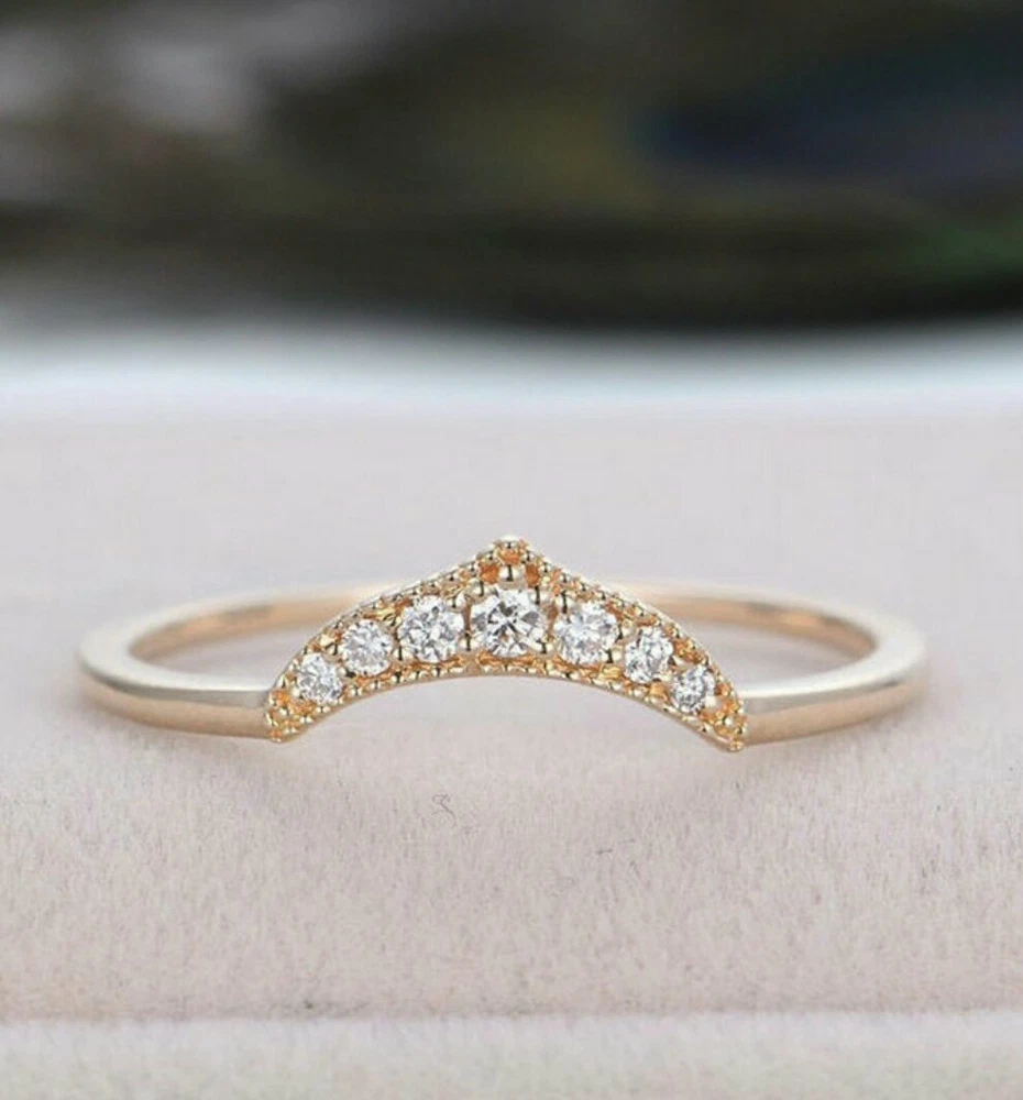 Curved Tiara Diamond Wedding Band 14k Gold Dainty Curved Tiara Ring Wedding Gift Light weight can be worn everyday HOW TO ORDER Simply Message upon ordering to let us know If you can't find the information you need or need some advice for your design? Feel free to contact us. A P P R O X T I M E All items are custom made to order. Our approx time is about 6 - 10 business days. This can change during peak season Note: There May Be Little Variation In Colour Between Image And Actual gemstone due to the resolution of the display of your computer or mobile But our product Image are original.Any image are not photoshop .We Are Trying Our Best To Display Actual Image Of The Gemstone Which is To Be Delivered To Our Customers. Our Business Policy Shipping Time & Delivery Time: Orders will be shipped between 3- 4 Days. Payment Terms : We Accept Payment Through PayPal ONLY. Return Policy: · You May Return Your Order Within 30 Days From The Date of Delivery. · The Item Must be Returned In Its Original Condition. · Shipping Charges Are Not Refundable. · Return Shipping Will Be Paid By Buyer. ( WE ARE NOT RESPONSIBLE FOR CUSTOM DUTY IN YOUR COUNTRY )