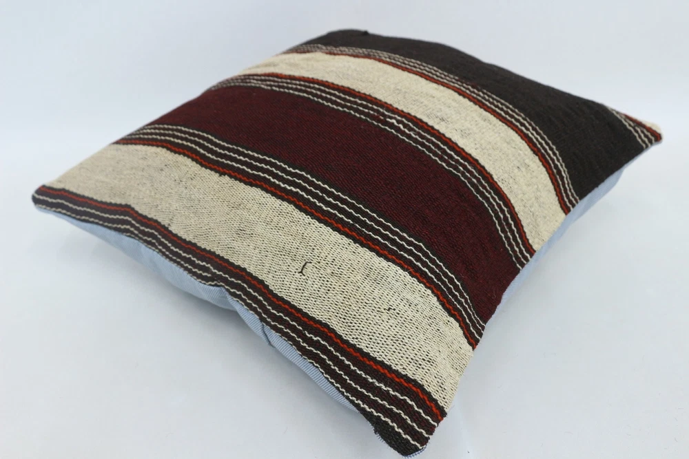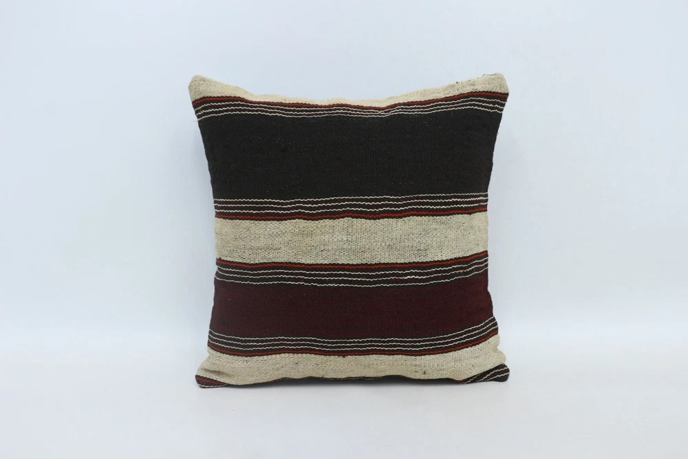 Kilim Pillow Details: All of my beautiful pillow covers or cushion cases are designed and made by me. I am making my throw pillow covers from handmade vintage rugs, Turkish rugs. Therefore, each of my vintage kilim pillowcase is one of kind. These cushions covers are piece of an art. The size of this pillow is 16 x 16 inches or 40 x 40 cm. The front side of this decorative pillow cover, cushion cover is wool on wool vintage kilim rug. The backside of this throw is high quality cotton fabric with a high quality zipper. This listing has 2 option for this handmade pillow. You can choose with insert or without insert. The listing photos is with insert in the pillowcase which is just for demonstration purpose. All of my vintage Turkish rugs have been professionally washed before I cut them as pillow case or cushion case so these kilim covers are 100 posent clean and ready to use. Due to the age and handmade nature of these vintage rugs, there might be imperfections and flaws that are not considered defects. This is a piece of a handmade vintage rug with minor signs of wear consistent with age and use that give it an antique look. You can see the condition of the rug pillow clearly in the detailed photos. I am going to ship your order of decorative pillow as soon as possible. I usually ship in the next day with DHL Express or FedEx which will deliver the kilim pillow, cushion cover just in 3-5 business days. It is my responsible until you receive pillow cover or pillow cover with insert at your door. If the pillow cover or insert get lost or damage during the shipping, I will ship the new kilim pillow cover or pillow insert for free as soon as possible. I take photos of my throw pillows indoor with professional camera which shows the real colors. The photos of these Turkish pillow covers are not altered. Keep in mind the colors of the rug vary slightly in different lights. Please contact to me for additional photos. I take the photos of my vintage rugs outside with daylight to show you the real and natural colors. My photos are not altered. Keep in mind the colors of the rug vary slightly in different lights. Please contact to me for additional photos. SATISFACTION GUARANTEED for your order in my shop. Your SATISFACTION is the most important to me. Please write me if you have any question or if you don't like anything from my pillow covers, cushion covers. If any reason, you are not happy from your Turkish pillow cover, I accept return without any hassle. Please read my shop policies for details. This cushion case or pillow cover can be used as decorative throw pillow, gift pillow, Christmas pillow case, bedding pillow, lumbar pillow, sofa pillow, bohemian pillow, boho pillow. You can find in any kind of Turkish kilim pillow cover in different design such as striped pillow, embroidered pillow, and geometric pillow.