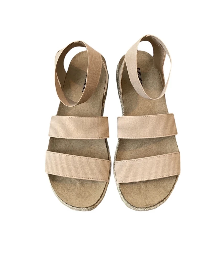 Cushionaire Mandy Elastic Beige Tan Nude Flatforms Espadrilles Size 9 Strappy