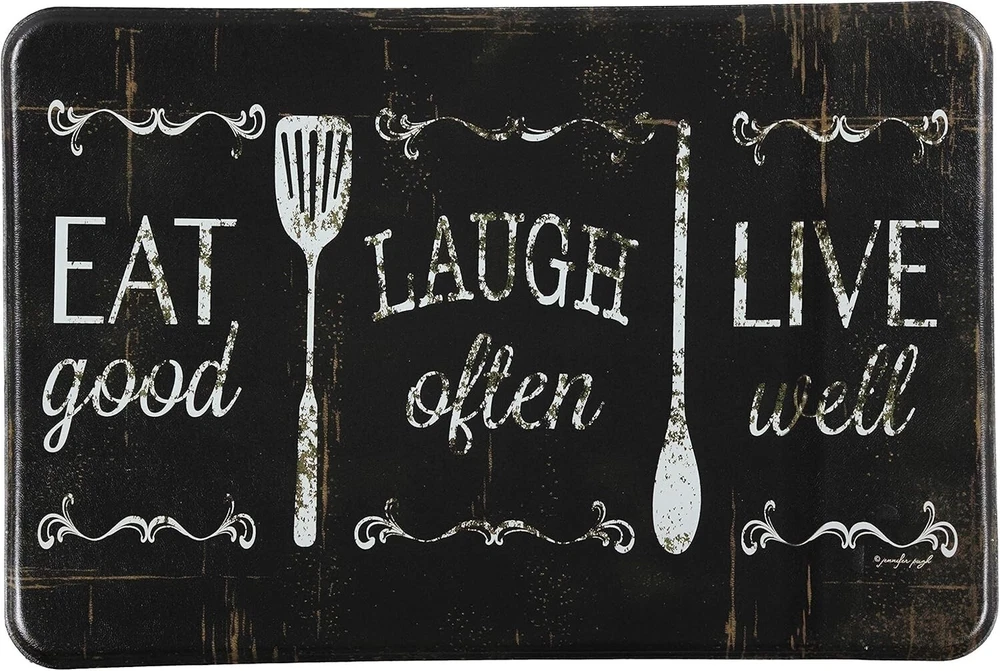 Pile Type: Normal Item Thickness: 14 Millimeters Item Weight: 2.94 Pounds Shape: Rectangle Type: Mat Pattern: Solid Personalize: No Size: 36 x 24 x 0.01 inches Color: Eat Laugh Live Material: Foam Department: Adults Number Of Items: 1 UPC: Does Not Apply Room: Kitchen, Garage, Office Product Dimensions: 36 X 24 X 0.01 Inches gtin13: Does Not Apply Features: Stain Resistant, Cushioned, Waterproof, Anti-Slip, Durable Product Care Instructions: Spot Clean Personalized: No Weave: Machine-Woven Brand: Unbranded Style: Artistic Era: 21st Century (2000-Now)