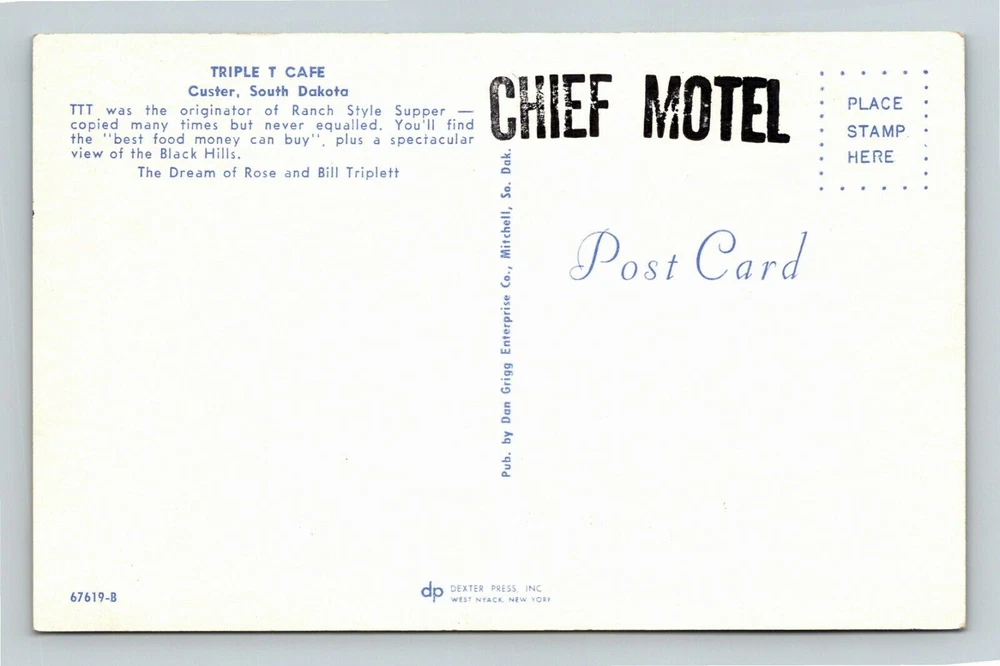 Custer SD-South Dakota, Triple T Cafe Antique Vintage Souvenir Postcard