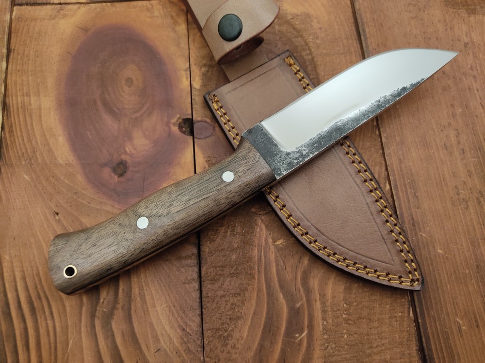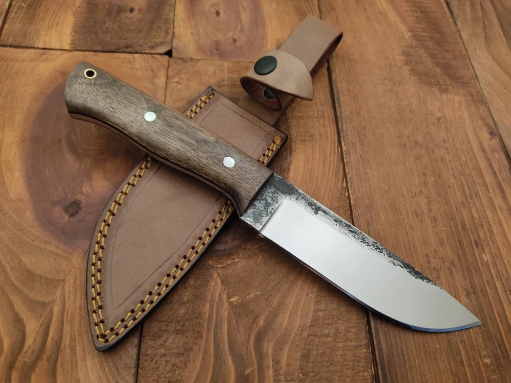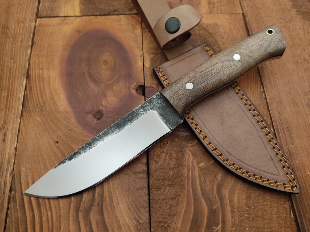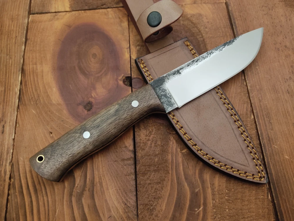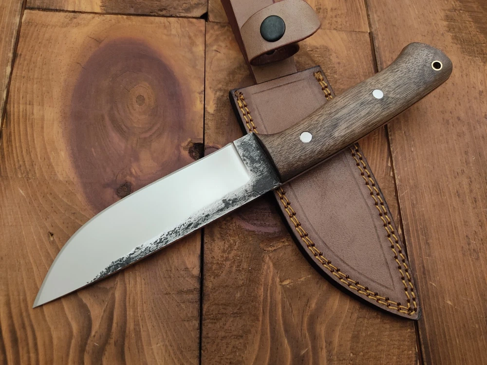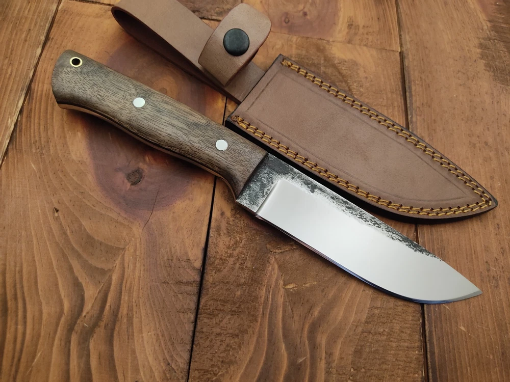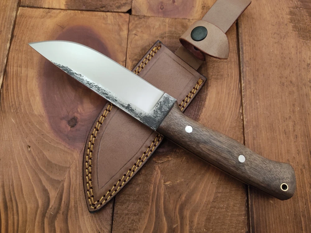 Dexterity: Ambidextrous Blade Type: Drop Point Handle Material: Walnut Wood Original/Reproduction: Original Tang: Full Type: Boot, Bowie, Combat, Everyday Carry, Hunting, Survival, Throwing, camp, Utility Knife, Gift, Skinner, Custom, Handmade, Fixed Blade, Camping, Outdoor, Bushcraft, Hand Forged, Gut Hook, vintage, New Year Gift, christmas gifts, Scandi Grind, Gift For Him Blade Edge: Plain Color: Silver Handmade: Yes Blade Length: 5.5 in Blade Material: 1095 High Carbon Steel Blade Hardness: 58 to 60 HRC Year: 2024 Overall Length: 10.5 Inch Features: Lanyard Hole, Sheath Included Country/Region of Manufacture: United States Brand: THUNDER STORKE