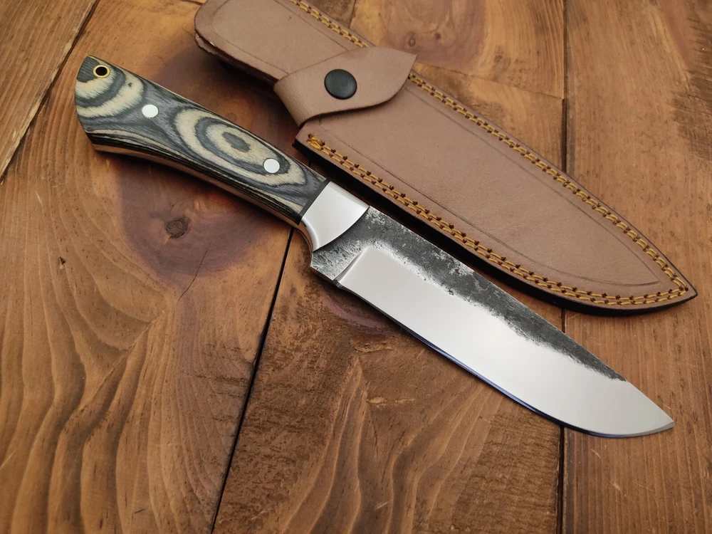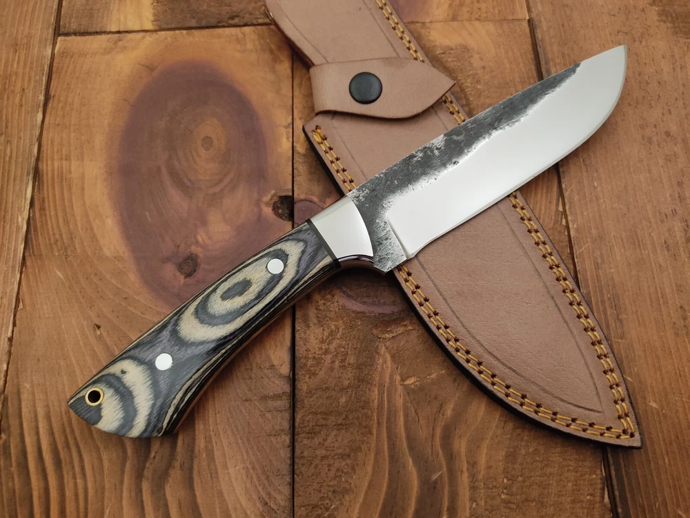 Custom 1095 Carbon Steel Outdoor Survival Skinner Hunting Knife Handcrafted