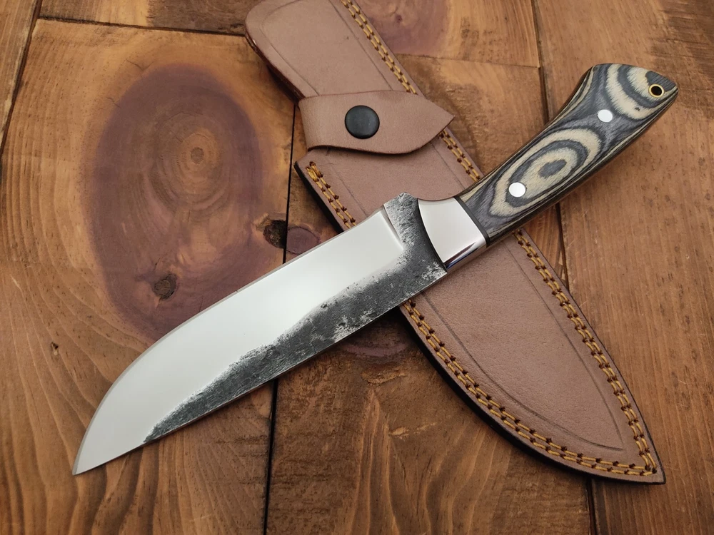 Year: 2024 Brand: THUNDER STORKE Blade Length: 6 in Dexterity: Ambidextrous Blade Edge: Plain Original/Reproduction: Original Overall Length: 11.2 Inch Blade Material: 1095 High Carbon Steel Tang: Full Blade Hardness: 58 to 60 HRC Features: Lanyard Hole, Sheath Included Handle Material: Pukka Wood Country/Region of Manufacture: United States Color: Silver Handmade: Yes Blade Type: Drop Point Type: Boot, Bowie, Combat, Everyday Carry, Hunting, Survival, Throwing, camp, Utility Knife, Gift, Skinner, Custom, Handmade, Fixed Blade, Camping, Outdoor, Bushcraft, Hand Forged, Gut Hook, vintage, New Year Gift, christmas gifts, Scandi Grind, Gift For Him