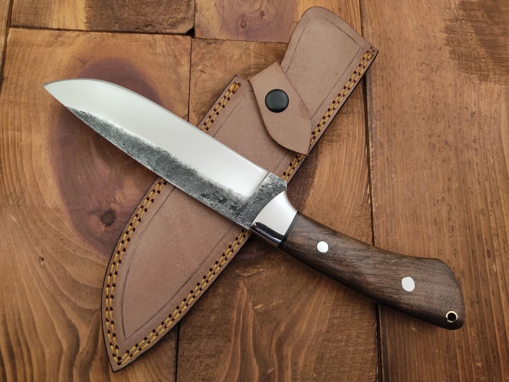 ITEM # HM-143 Fabulous Unique THUNDER STORKE Custom MADE KNIFE Custom Handmade Forged 1095 High Carbon Steel Scandi Grind Bush Craft Camping Survival Outdoor Vintage Hunting Fixed Blade Knife High Carbon Steel holds an edge very well and is optimum for hunting and skinning use as well as tactical and military tasks. The steel is very corrosive and will tarnish and turn the blade black when blood and acidic liquids or chemicals get onto the blade. The blade will still work fine, but will lose the satin color when it was new. Stainless Steel Bolster & Rose Wood Handle 1095 High Carbon Steel Blade RAZOR SHARP Gorgeous Handle & Blade 11.2" Long | Blade is 6" Long | Handle is 5.2 " 5 mm Thick Blade | Beautiful Worked Blade & Handle WORK OF ART This prestigious unique HUNTING knife was designed and custom made by THUNDERSTORKE . Blade was given excellent heat treatment and Rockwell hardness of the blade 58 to 60 . PAYMENT: As Per Ebay Requirement DISPATCH TIME: 2 to 3 DAYS AFTER RECEIVING YOUR PAYMENT COURIER / SHIPPING: When we print the postage label there is a number that is on the label. This number is called a "Delivery Confirmation Number". The post office is not like UPS or FEDX where they scan the mail at the receipt point and then track it to your door. What the post office does is scan the item when it is delivered (if they choose to) and then you will see that it was delivered. Sometimes they do scan it when you drop it off, but this is rare. If they did scan it at a sorting facility, you see it moving across the USA. But this is very rare. - eBay confuses the buyer with the "tracking number" next to the post offices "delivery confirmation number" when in reality there is not a tracking number. You can ask this at the post office and they will concur. We print labels off the internet using eBay's USPS shipping program and then we drop the packages off at the post office, similar if you were mailing a stamped letter. The post office is supposed to scan it "received" and they do this about 50% of the time. But sometimes they do not scan them. Do not worry, we did mail the item and it is on it's way to you. COMBINE SHIPPING OFFER: We Do Combine Shipping Discount On Multiple Purchase are as Follow. BUYER FEEDBACK AND Detailed Seller Ratings (DSR) SCORES : We spend a lot of time trying to describe our knives 100% perfect in detail, but sometimes we miss things. In the event that we missed something, upon inspection of the item when you receive it, let us know by contacting us via the "Contact Seller" link (next to our user ID profile) and allow us to solve your problem before leaving us low DSR scores (Detailed Seller Ratings) or neutral and negative feedback. - Help us, help ourselves to do better, with our future business on eBay by allowing us to correct our faults and fix the sale with you to a positive. We need to keep our scores high to continue to offer our great knives for sale on eBay. KNIFE CARE and SHEATHS : Leather sheaths pull moisture out of the air and tend to rust knife blades if not stored properly. When you are done using the knife, store it away from the leather sheath and put gun oil, Seal 1, or a similar protectant on the blade and store. Damascus, 1095HC, and D2 can rust and develop stains if not lubricated. AGE RESTRICTION: WE DON'T SELL KNIVES TO ANY ONE WHO IS UNDER AGE . GUARANTEE: If you are not happy with your purchase, we offer you a peace of mind guarantee if you return the product within 7 working days. We will refund your money back immediately ON RECEIVING THE KNIFE BACK IN ORIGINAL CONDITION. DELIBERATE TAMPERING WITH THE PRODUCT OR MISUSE WILL NOT QUALIFY FOR THE REFUND. SHIPPING CHARGES ARE NON-REFUNDABLE. DISCLAIMER: WHEN YOU ARE BIDDING ON THIS KNIFE YOU ARE CONFIRMING US THAT YOUR AGE QUALIFIES FOR THIS PURCHASE AND THIS IS A LEGAL PURCHASE. TAKES NO RESPONSIBILITY FOR ANY ILLEGAL PURCHASE Thank you, - Props in the Photos are NOT INCLUDED. Knife & Sheath ONLY .