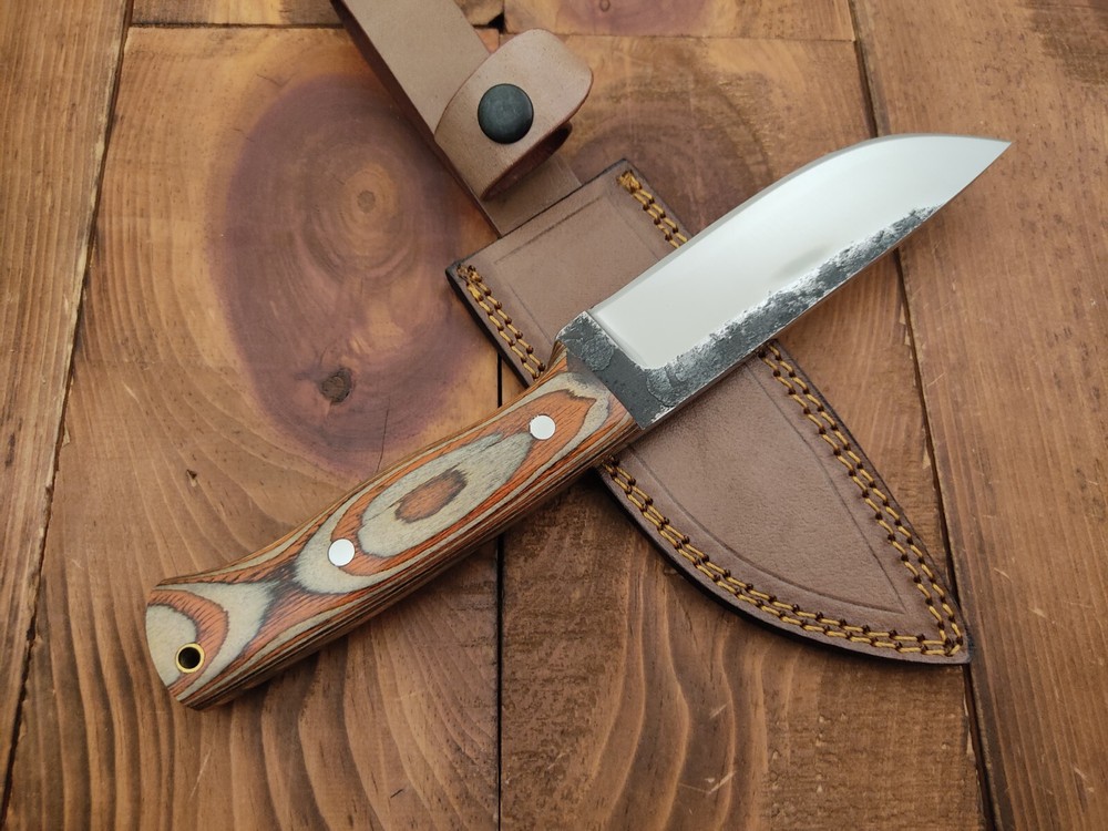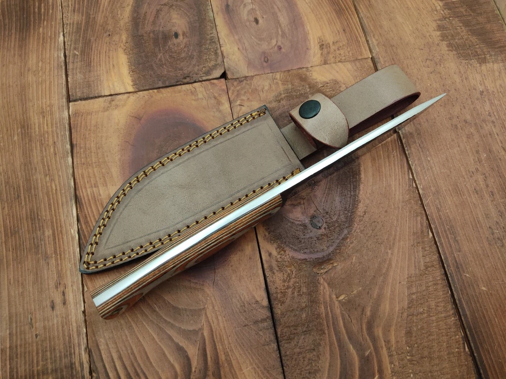ITEM # HM-138 Fabulous Unique THUNDER STORKE Custom MADE KNIFE Custom Handmade Forged 1095 High Carbon Steel Scandi Grind Bush Craft Camping Survival Outdoor Vintage Hunting Fixed Blade Knife High Carbon Steel holds an edge very well and is optimum for hunting and skinning use as well as tactical and military tasks. The steel is very corrosive and will tarnish and turn the blade black when blood and acidic liquids or chemicals get onto the blade. The blade will still work fine, but will lose the satin color when it was new. Pukka Wood Handle 1095 High Carbon Steel Blade RAZOR SHARP Gorgeous Handle & Blade 10.5" Long | Blade is 5.5" Long | Handle is 5 " 5 mm Thick Blade | Beautiful Worked Blade & Handle WORK OF ART This prestigious unique HUNTING knife was designed and custom made by THUNDERSTORKE . Blade was given excellent heat treatment and Rockwell hardness of the blade 58 to 60 . PAYMENT: As Per Ebay Requirement DISPATCH TIME: 2 to 3 DAYS AFTER RECEIVING YOUR PAYMENT COURIER / SHIPPING: When we print the postage label there is a number that is on the label. This number is called a "Delivery Confirmation Number". The post office is not like UPS or FEDX where they scan the mail at the receipt point and then track it to your door. What the post office does is scan the item when it is delivered (if they choose to) and then you will see that it was delivered. Sometimes they do scan it when you drop it off, but this is rare. If they did scan it at a sorting facility, you see it moving across the USA. But this is very rare. - eBay confuses the buyer with the "tracking number" next to the post offices "delivery confirmation number" when in reality there is not a tracking number. You can ask this at the post office and they will concur. We print labels off the internet using eBay's USPS shipping program and then we drop the packages off at the post office, similar if you were mailing a stamped letter. The post office is supposed to scan it "received" and they do this about 50% of the time. But sometimes they do not scan them. Do not worry, we did mail the item and it is on it's way to you. COMBINE SHIPPING OFFER: We Do Combine Shipping Discount On Multiple Purchase are as Follow. BUYER FEEDBACK AND Detailed Seller Ratings (DSR) SCORES : We spend a lot of time trying to describe our knives 100% perfect in detail, but sometimes we miss things. In the event that we missed something, upon inspection of the item when you receive it, let us know by contacting us via the "Contact Seller" link (next to our user ID profile) and allow us to solve your problem before leaving us low DSR scores (Detailed Seller Ratings) or neutral and negative feedback. - Help us, help ourselves to do better, with our future business on eBay by allowing us to correct our faults and fix the sale with you to a positive. We need to keep our scores high to continue to offer our great knives for sale on eBay. KNIFE CARE and SHEATHS : Leather sheaths pull moisture out of the air and tend to rust knife blades if not stored properly. When you are done using the knife, store it away from the leather sheath and put gun oil, Seal 1, or a similar protectant on the blade and store. Damascus, 1095HC, and D2 can rust and develop stains if not lubricated. AGE RESTRICTION: WE DON'T SELL KNIVES TO ANY ONE WHO IS UNDER AGE . GUARANTEE: If you are not happy with your purchase, we offer you a peace of mind guarantee if you return the product within 7 working days. We will refund your money back immediately ON RECEIVING THE KNIFE BACK IN ORIGINAL CONDITION. DELIBERATE TAMPERING WITH THE PRODUCT OR MISUSE WILL NOT QUALIFY FOR THE REFUND. SHIPPING CHARGES ARE NON-REFUNDABLE. DISCLAIMER: WHEN YOU ARE BIDDING ON THIS KNIFE YOU ARE CONFIRMING US THAT YOUR AGE QUALIFIES FOR THIS PURCHASE AND THIS IS A LEGAL PURCHASE. TAKES NO RESPONSIBILITY FOR ANY ILLEGAL PURCHASE Thank you, - Props in the Photos are NOT INCLUDED. Knife & Sheath ONLY .