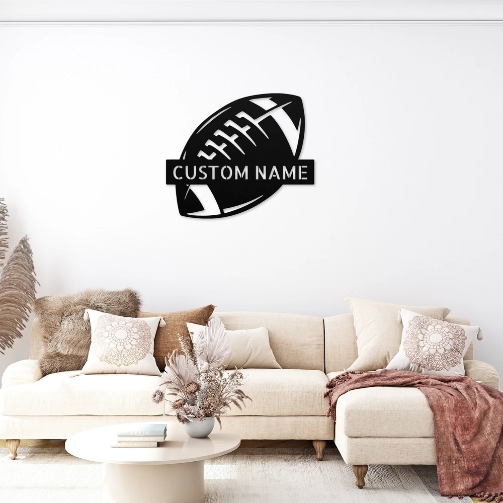 Product Description Custom American Football Metal Sign - Perfect Gift for Sports Fans Show your passion for football with our Custom American Football Metal Sign ! Made from 16 gauge high-quality metal, this sign is designed for durability and longevity. With its powder-coated finish, it is resistant to dust, weather, and moisture, making it suitable for both indoor and outdoor use. This customizable sign is perfect for any football enthusiast. You can add your name, team logo, or a favorite quote, making it a unique piece for your home, office, or man cave. It’s an excellent way to express your love for the game and can serve as a great conversation starter during game nights. This sign also makes a fantastic gift for birthdays, Christmas, or any special occasion for friends and family who love American football. Whether you’re decorating your game room or surprising a sports fan, this sign is sure to impress. Key Features: Customizable: Personalize with your name, team logo, or a favorite quote. Durable Material: Constructed from 16 gauge high-quality metal for strength and resilience. Weather-Resistant: Powder coating protects against dust, moisture, and fading. Versatile Decor: Ideal for homes, offices, sports rooms, or outdoor spaces. Great Gift Choice: Perfect for sports lovers on birthdays, holidays, or special occasions. Bring your love for football to life with the Custom American Football Metal Sign and make a statement in any space! Service and Color Choice Our metal signs are designed to be personalized just for you, making them the perfect addition to any space! The default color for our signs is Black , but we also offer a variety of beautiful options including Copper, Gold, White, and Silver . After placing your order, simply contact us with your preferred color choice, and we'll ensure your sign is exactly how you envision it. Let’s create something special together!
