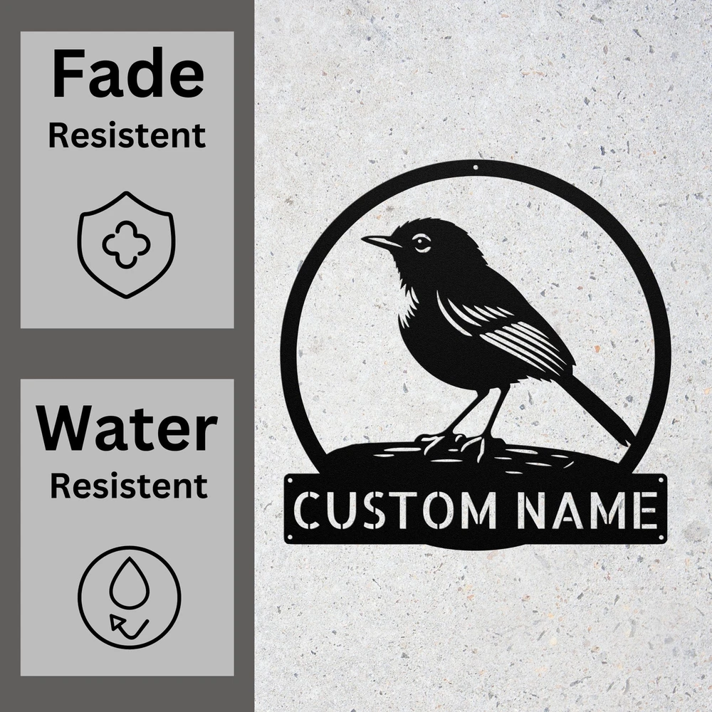 Product Description Custom Australasian Robin Bird Metal Sign Personalized Wall Art Home Decor Gift Bring a touch of nature into your home with our Custom Australasian Robin Bird Metal Sign . This exquisite piece of personalized wall art showcases the beauty of the Australasian robin, making it a perfect décor item for bird lovers and nature enthusiasts. Crafted from durable 16-gauge high-quality metal, this sign is designed to withstand the test of time while adding an artistic flair to any space. The sign features a protective powder-coated finish that makes it resistant to dust, weather, and water, ensuring its durability for both indoor and outdoor use. Hang it in your living room, garden, or office to create a warm and inviting atmosphere. This custom metal sign also makes for a thoughtful gift for Christmas, birthdays, or any special occasion, allowing you to share a unique and personal touch with friends and family. Key Features: Material: Made from 16-gauge high-quality metal for lasting durability Finish: Powder-coated for superior protection against dust, weather, and water Design: Customizable with your choice of text or details for a personal touch Versatile Use: Suitable for both indoor and outdoor display Gift Idea: Perfect for Christmas, birthdays, housewarmings, or any special occasion Personalization: Unique customization options to create a one-of-a-kind gift Size Options: Available in various sizes to fit your specific needs Easy to Hang: Pre-drilled holes for straightforward installation on walls or fences Enhance your décor or surprise a loved one with this Custom Australasian Robin Bird Metal Sign a beautiful blend of artistry and personalization that will bring joy to any space! Service and Color Choice Our metal signs are designed to be personalized just for you, making them the perfect addition to any space! The default color for our signs is Black , but we also offer a variety of beautiful options including Copper, Gold, White, and Silver . After placing your order, simply contact us with your preferred color choice, and we'll ensure your sign is exactly how you envision it. Let’s create something special together!