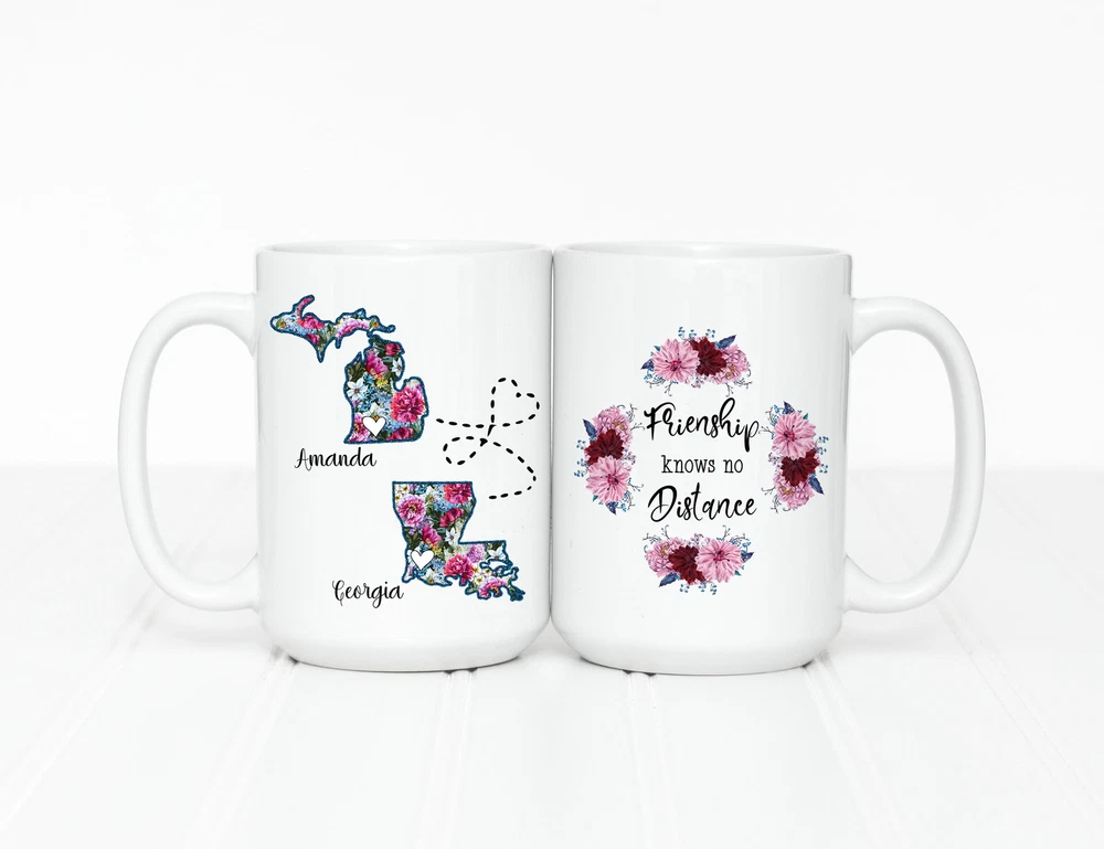 Custom Best Friend Gifts Long Distance Friendship Mug Long Distance Friendship Product Details.. This high quality 11oz. ceramic white mug has a premium hard coat that provides crisp and vibrant color reproduction sure to last for years. Perfect for all hot & cold beverages. The highest quality printing possible is used. It will never fade no matter how many times you wash it. Material: 100% Ceramic. Print both sides. Dishwasher and Microwave Safe. High Gloss + Premium White Finish. Printed in the U.S.A. Personalized & Custom. We support personalized and custom mug to add custom, when placing an order, you can add notes to the "order note" in shipping address section. Also you can contact us directly via message. Shipping Info. Ready to ship in 1 to 2 business days, All products are made-to-order and proudly printed in the United States. Shipped by USPS and DHL, You will receive your order in 5-7 days. Replace & Refund. All products are defective during shipping broken, chipped will be replaced free of charge. You are not satisfied with the product, we will refund 100% money to you. If any other issues arise, please do not hesitate to message, we would be more than happy to assist you.
