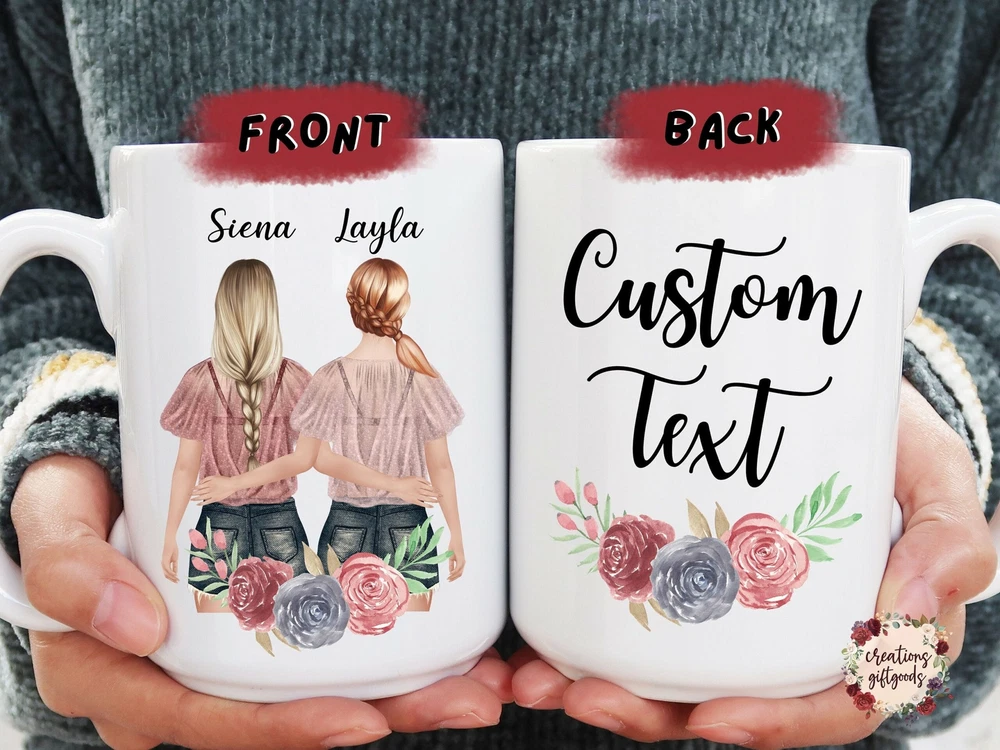 Custom Best Friend Mug Custom Message Mugs Personalized Bff Gift Sister Gift Product Details.. This high quality 11oz. ceramic white mug has a premium hard coat that provides crisp and vibrant color reproduction sure to last for years. Perfect for all hot & cold beverages. The highest quality printing possible is used. It will never fade no matter how many times you wash it. Material: 100% Ceramic. Print both sides. Dishwasher and Microwave Safe. High Gloss + Premium White Finish. Printed in the U.S.A. Personalized & Custom. We support personalized and custom mug to add custom, when placing an order, you can add notes to the "order note" in shipping address section. Also you can contact us directly via message. Shipping Info. Ready to ship in 1 to 2 business days, All products are made-to-order and proudly printed in the United States. Shipped by USPS and DHL, You will receive your order in 5-7 days. Replace & Refund. All products are defective during shipping broken, chipped will be replaced free of charge. You are not satisfied with the product, we will refund 100% money to you. If any other issues arise, please do not hesitate to message, we would be more than happy to assist you.
