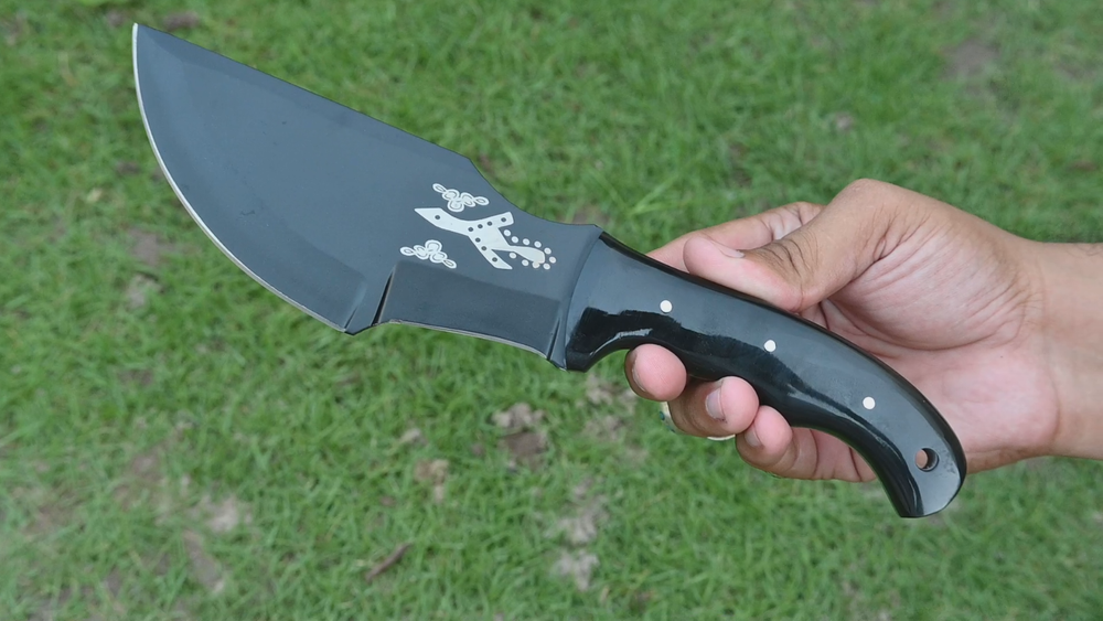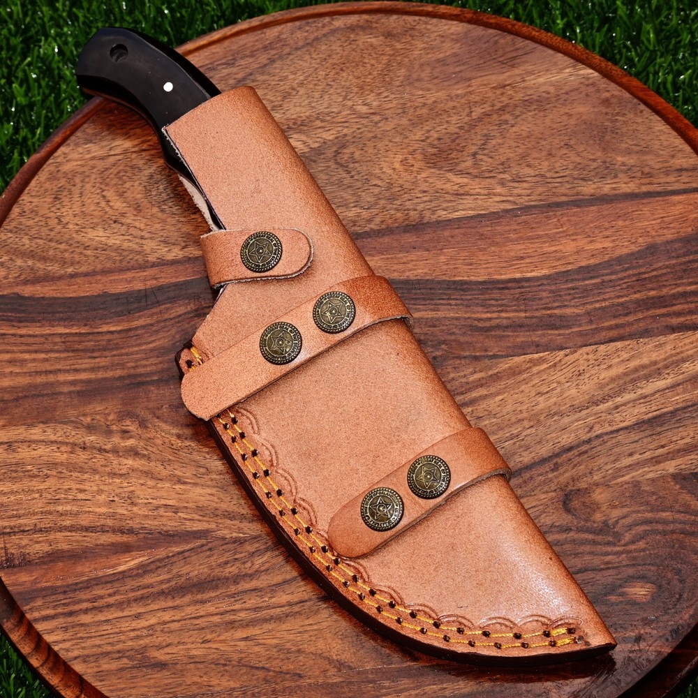 CUSTOM HAND MADE HIGH CR12 STAINLESS STEEL HUNTING TRACKER KNIFE Bull Horn Handle This superb design knife is hand forged. Blade of this knife has a nice file work. The balance and shape of this knife ensures perfect grip. Overall Length: 11” Inches Blade Length: 6 ”Inches Handle Length: 5 ”Inches Package Includes: with Leather Sheath Warning: Keep fingers clear of blades. Store away from children.