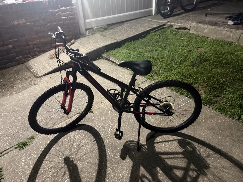 This mountain bike is a beast on any trail! The custom black and red decal gives it a sharp, aggressive look, while the full suspension and hydraulic disc brakes make rides smooth and controlled. The 7-speed setup with thumb shifter is super responsive, and the adjustable seat ensures comfort on long rides. Built tough with an aluminum frame and winter tires, it handles rough terrain effortlessly. Plus, the lifetime warranty gives peace of mind. Perfect for thrill-seekers who want style and performance!