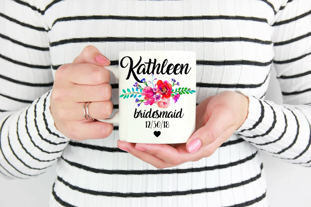 Custom Bridesmaid Mug Personalized Bridesmaid Gift Sister Coffee Gift Bridesmaid Product Details.. This high quality 11oz. ceramic white mug has a premium hard coat that provides crisp and vibrant color reproduction sure to last for years. Perfect for all hot & cold beverages. The highest quality printing possible is used. It will never fade no matter how many times you wash it. Material: 100% Ceramic. Print both sides. Dishwasher and Microwave Safe. High Gloss + Premium White Finish. Printed in the U.S.A. Personalized & Custom. We support personalized and custom mug to add custom, when placing an order, you can add notes to the "order note" in shipping address section. Also you can contact us directly via message. Shipping Info. Ready to ship in 1 to 2 business days, All products are made-to-order and proudly printed in the United States. Shipped by USPS and DHL, You will receive your order in 5-7 days. Replace & Refund. All products are defective during shipping broken, chipped will be replaced free of charge. You are not satisfied with the product, we will refund 100% money to you. If any other issues arise, please do not hesitate to message, we would be more than happy to assist you.