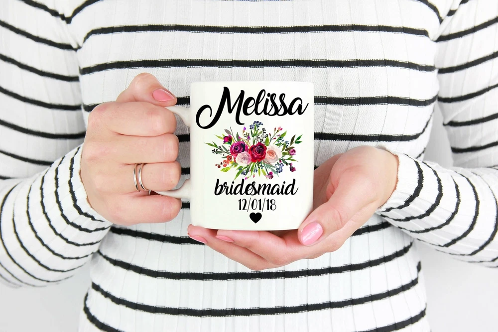 Custom Bridesmaid Mug Personalized Bridesmaid Gift Sister Coffee Gift Bridesmaid Product Details.. This high quality 11oz. ceramic white mug has a premium hard coat that provides crisp and vibrant color reproduction sure to last for years. Perfect for all hot & cold beverages. The highest quality printing possible is used. It will never fade no matter how many times you wash it. Material: 100% Ceramic. Print both sides. Dishwasher and Microwave Safe. High Gloss + Premium White Finish. Printed in the U.S.A. Personalized & Custom. We support personalized and custom mug to add custom, when placing an order, you can add notes to the "order note" in shipping address section. Also you can contact us directly via message. Shipping Info. Ready to ship in 1 to 2 business days, All products are made-to-order and proudly printed in the United States. Shipped by USPS and DHL, You will receive your order in 5-7 days. Replace & Refund. All products are defective during shipping broken, chipped will be replaced free of charge. You are not satisfied with the product, we will refund 100% money to you. If any other issues arise, please do not hesitate to message, we would be more than happy to assist you.