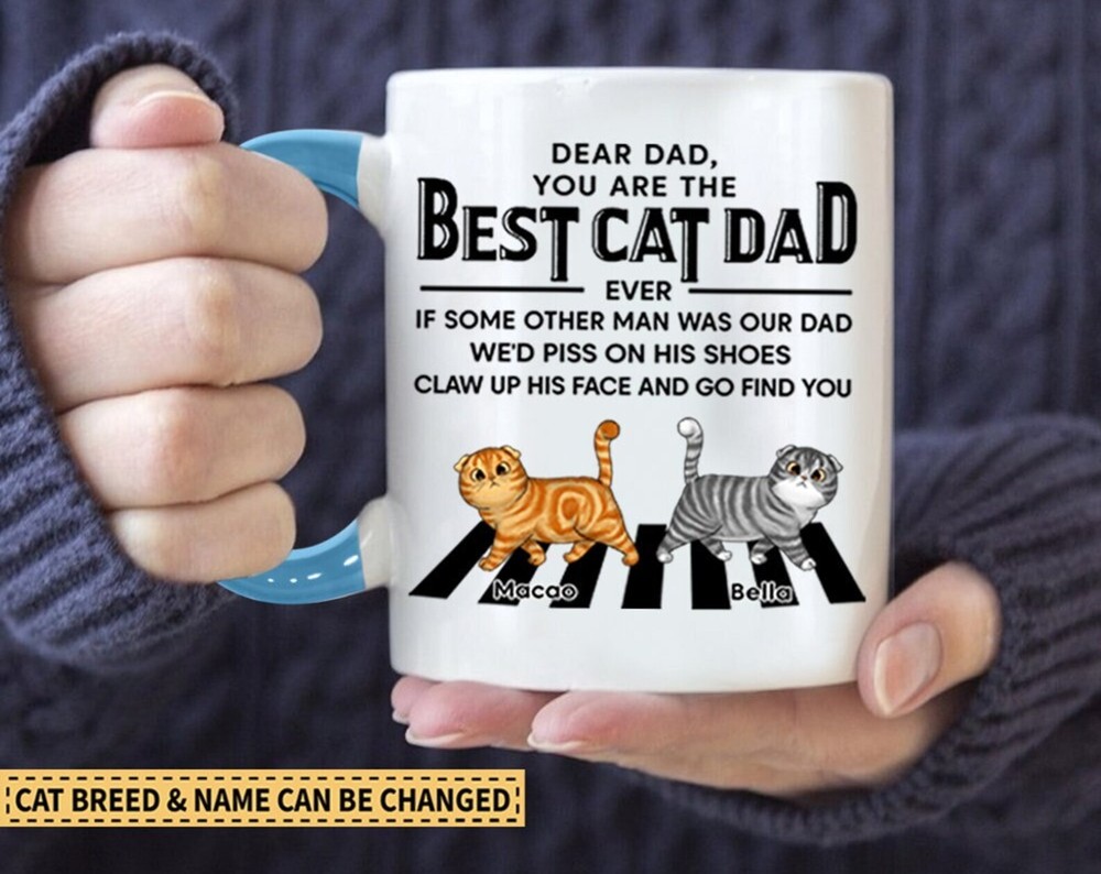 Personalized You Are The Best Cat Dad Ever Mug Custom Cat Dad Mug With Cat Name Fathers Day Gift For Cat Dad Funny Cat Lover Gifts Product Details.. This high quality 11oz. ceramic white mug has a premium hard coat that provides crisp and vibrant color reproduction sure to last for years. Perfect for all hot & cold beverages. The highest quality printing possible is used. It will never fade no matter how many times you wash it. Material: 100% Ceramic. Print both sides. Dishwasher and Microwave Safe. High Gloss + Premium White Finish. Printed in the U.S.A. Personalized & Custom. We support personalized and custom mug to add custom, when placing an order, you can add notes to the "order note" in shipping address section. Also you can contact us directly via message. Shipping Info. Ready to ship in 1 to 2 business days, All products are made-to-order and proudly printed in the United States. Shipped by USPS and DHL, You will receive your order in 5-7 days. Replace & Refund. All products are defective during shipping broken, chipped will be replaced free of charge. You are not satisfied with the product, we will refund 100% money to you. If any other issues arise, please do not hesitate to message, we would be more than happy to assist you.