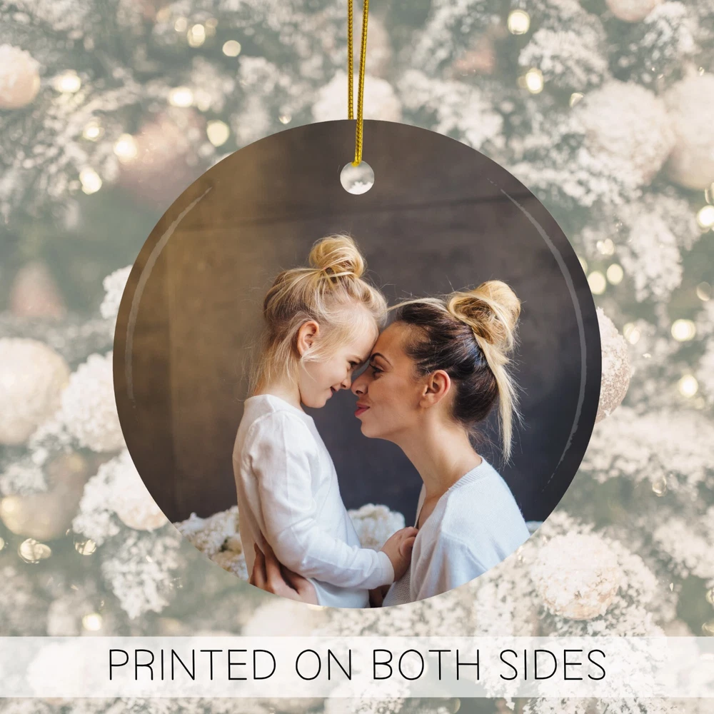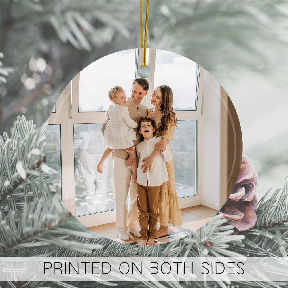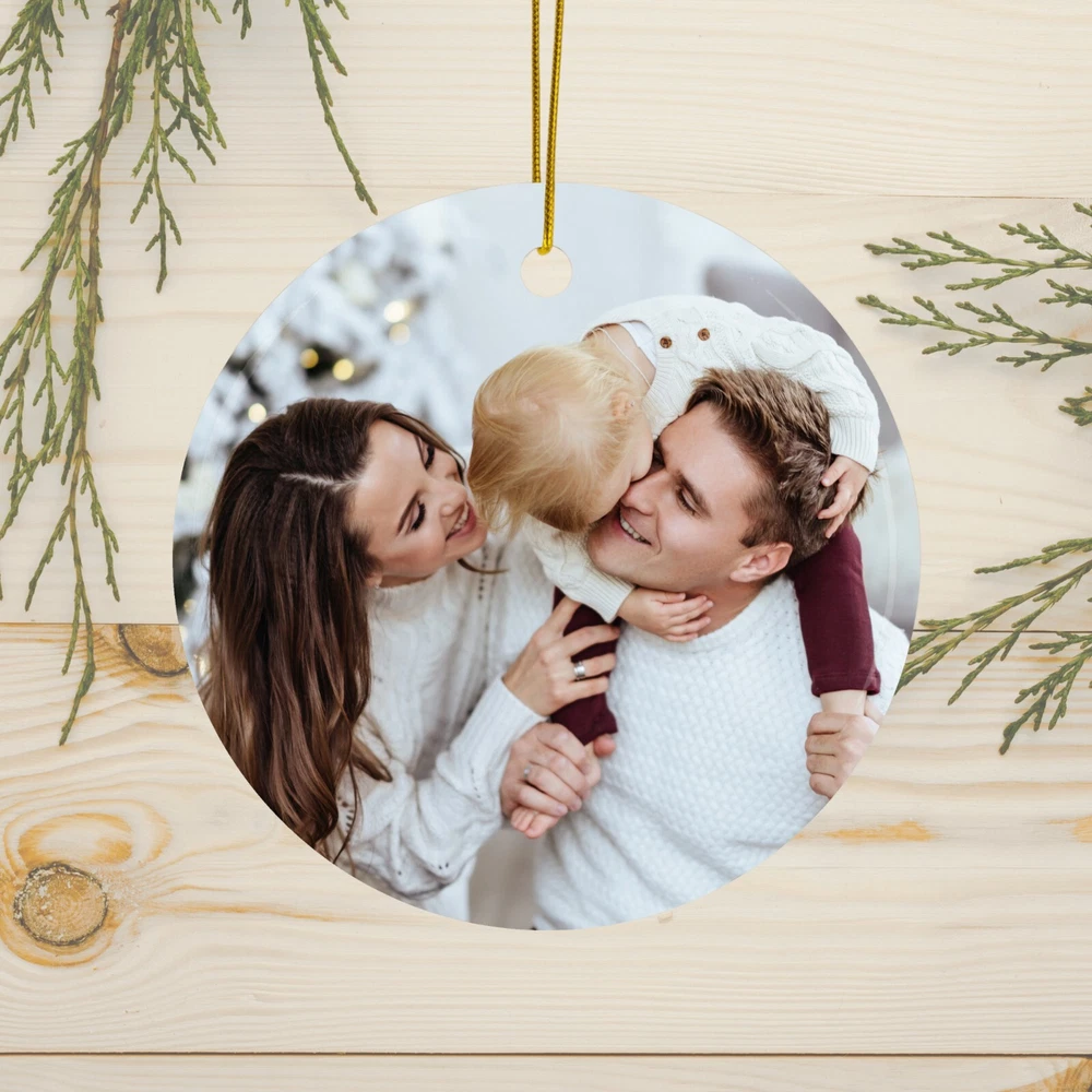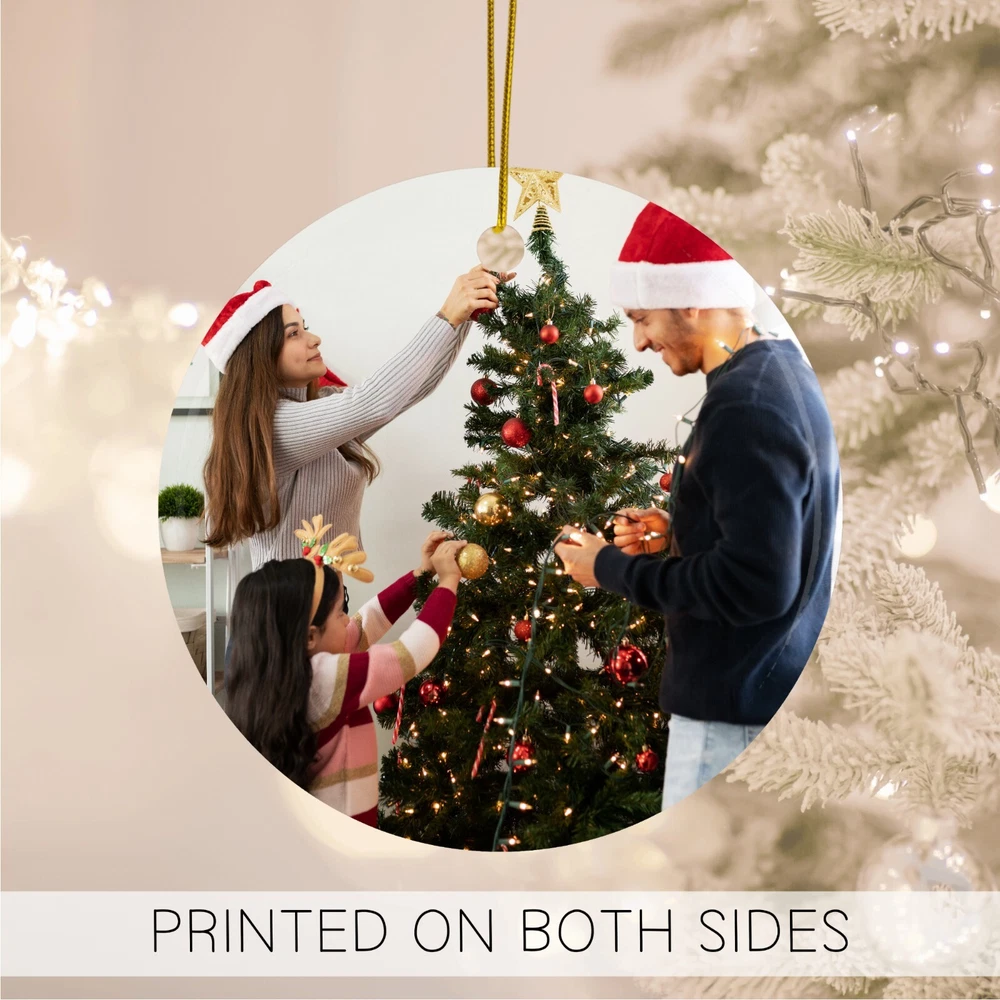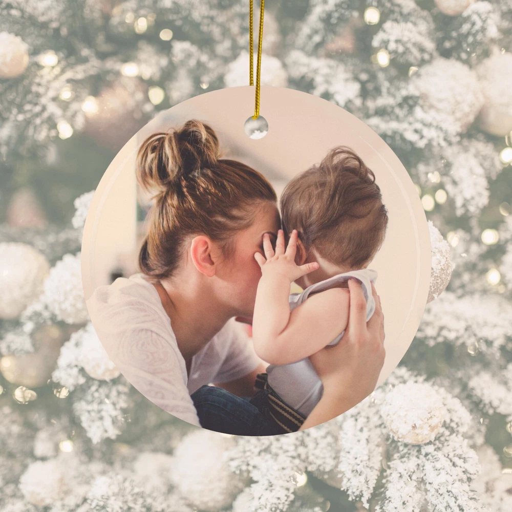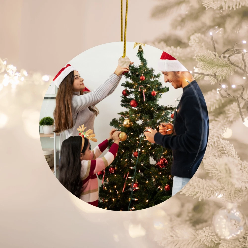 Add a touch of joy to your Christmas tree with this customizable and handmade ornament. The 2.75 inch ceramic ornament features a happy character in a circle shape, and is designed with a silver quick connect string for easy hanging. The ornament is perfect for adults and comes in a set of one, with the option to personalize it with your own photo or design. This ornament has a holiday theme, making it a great addition to your Christmas decor. Measuring at 3 inches in length and 2.75 inches in height, this ornament is a must-have for anyone looking to add a unique and personalized touch to their holiday decorations. Choose the shape: Heart, Star, Oval, Circle