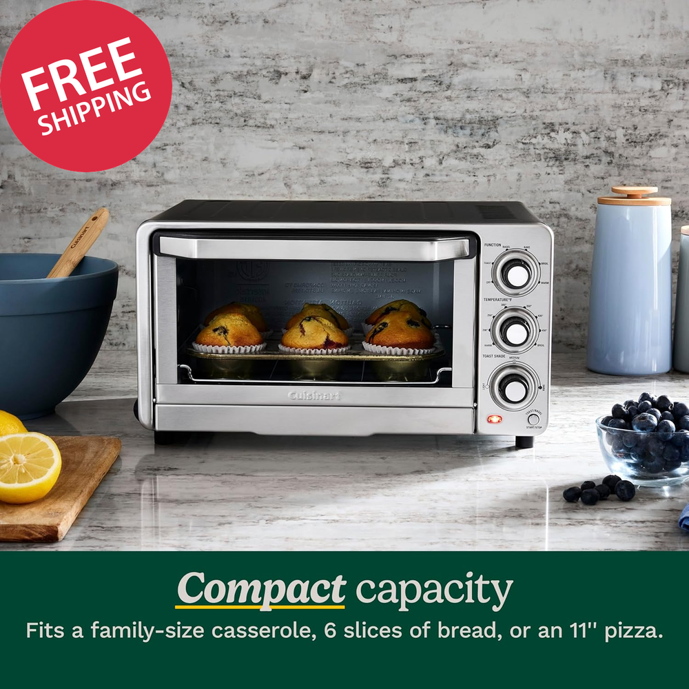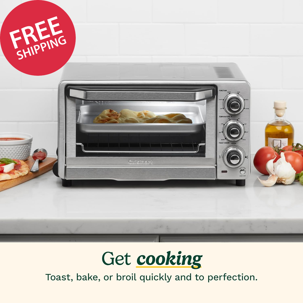 Custom Classic Toaster Oven Broiler, 1800 Watt Countertop Toaster Oven to Bake, Broil, and Toast, Non-Stick Interior, Consistent Toast Control, Brushed Stainless Steel/Black, TOB-40N VERSATILE COOKING: Cuisinart Toaster Oven Broiler with 1800 watts of high-performance power offers a wide range of cooking functions in one including toast, bagel, bake, broil, pizza, keep warm, and more. SPACIOUS CAPACITY: Cuisinart oven with 0.5-cubic feet interior lets you toast 6 slices of bread or 4 bagel halves, bake an 11-inch pizza, or roast a family-sized casserole. PERFECT TOAST: Always Even Shade Control monitors the toasting temperature to automatically adjust cooking time for consistent toast results slice after slice. SAFETY & CONVENIENCE: Simple to use, this countertop oven features a cool-touch handle, easy-grip dials, and automatic shutoff for safety, an auto-slide rack to remove cooked food easily, and a non-stick interior for easy cleanup. WHAT’S INCLUDED: Beautiful brushed stainless steel toaster oven comes with a limited 3-year warranty, is BPA free, and includes a wire rack, broiling rack, baking/drip pan, front removable crumb tray with cool-touch grip, and a recipe book. Compact cooking versatility and modern design make this Cuisinart Custom Classic Toaster Oven Broiler an ideal choice for your lifestyle. Boasting 1800 watts of high-performance power, this Cuisinart Toaster Oven Broiler lets you leverage a wide range of cooking functions in one appliance such as toast, bagel, bake, broil, pizza, keep warm, and more. The spacious 0.5-cubic feet interior can toast 6 slices of bread or 4 bagel halves, bake an 11-inch pizza, or roast a family-sized casserole. To ensure consistent results, the Always Even Shade Control monitors the toasting temperature to automatically adjust cooking time for consistent toast results slice after slice. For added convenience, this countertop oven features a cool-touch handle, easy-grip dials, and automatic shutoff for safety, an auto-slide rack to remove cooked food easily, and a non-stick interior for easy cleanup. The brushed stainless steel and black toaster oven broiler includes a wire rack, broiling rack, baking/drip pan, front removable crumb tray with cool-touch grip, and a recipe book. BPA free, the Cuisinart Custom Classic Toaster Oven Broiler TOB-40N comes with a limited 3-year warranty. Wattage 1800 watts Warranty Description 2 Year limited warranty Capacity 0.5 Cubic Feet Power Source Corded Electric Style Toaster Oven Item Type Name Toaster Oven Broiler Control Type touch Product Dimensions 11.74"D x 17"W x 8.35"H Material Stainless Steel Model Number TOB-40NNAS Model Name TOB-40N Custom Classic Toaster Oven Broiler Temperature Range 200 - 450 Degrees Fahrenheit Finish Type Brushed Included Components Toaster Oven Door Style Dropdown Door Item Weight 12.9 Pounds Door Material Type Stainless Steel Special Feature Manual Other Special Features of the Product Manual Color Black Item Dimensions D x W x H 11.74"D x 17"W x 8.35"H Cable Length 2.5 Feet Global Trade Identification Number 00086279098955, 10086279246735 Shipping Fast shipping is very important for us. Our standard US shipping service is FREE. Your order will be shipped within 2-3 business days upon full payment received. Your order will be delivered within 2-3 business days after the handling time. We only ship to the confirmed PayPal address. We reserve the right to cancel any order for any reason at any time. We are not responsible for undeliverable addresses. Returns and payment We offer a 30 days return policy from checkout winning date. We allow only PayPal as payment method FeedBack Your feedback very important to us, after you get your package and you are satisfied with our service please leave us positive feedback If you have any problem with your order / any questions please before leave any type of feedback For any questions, using eBay contact system Please visit our eBay store to check out other items for sale! Thank you for shopping at our store.