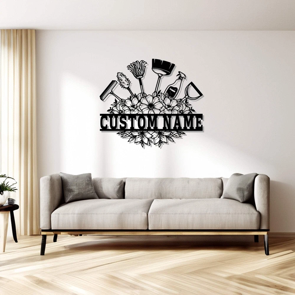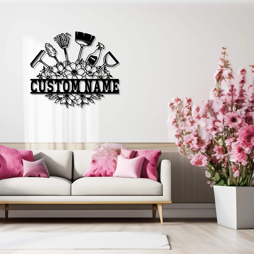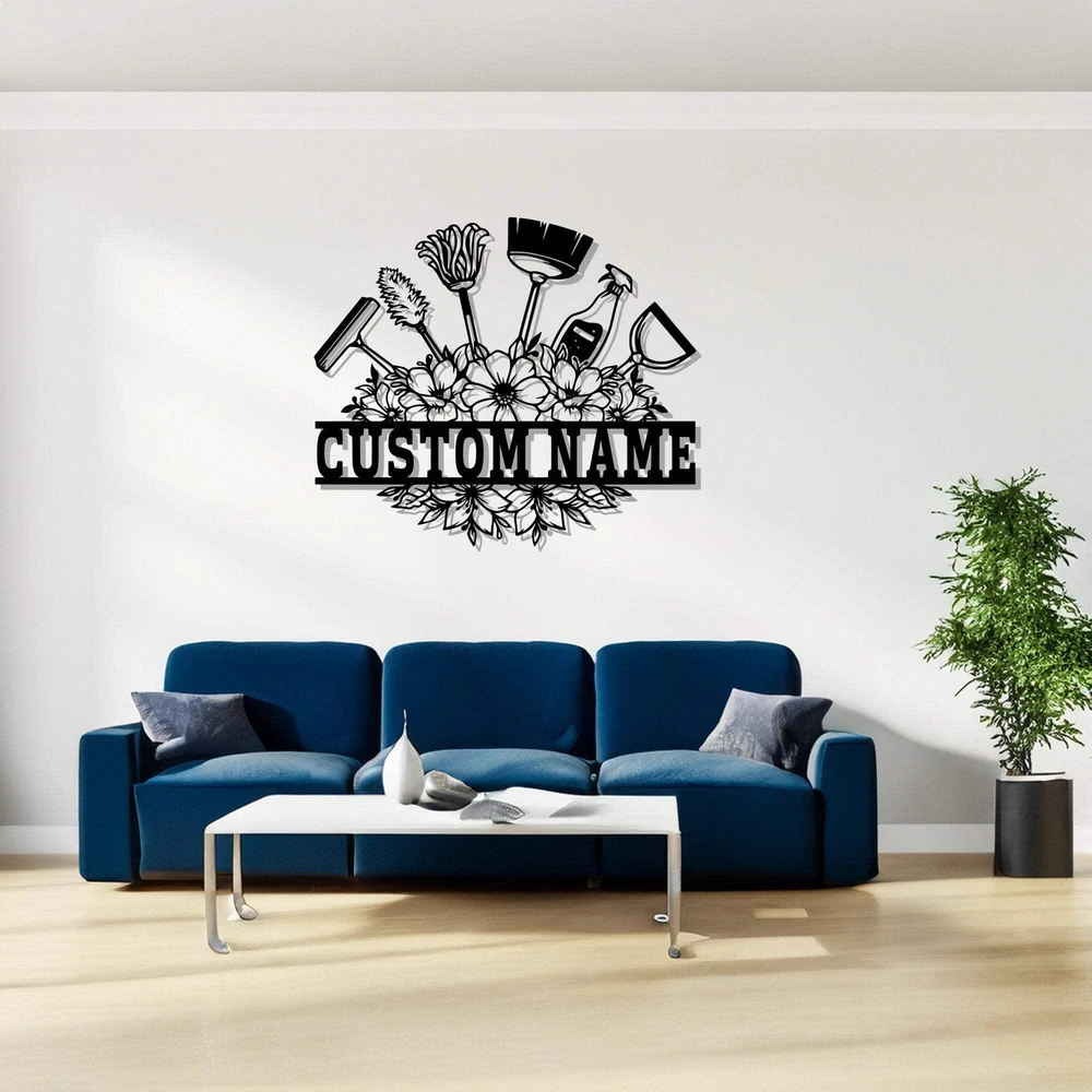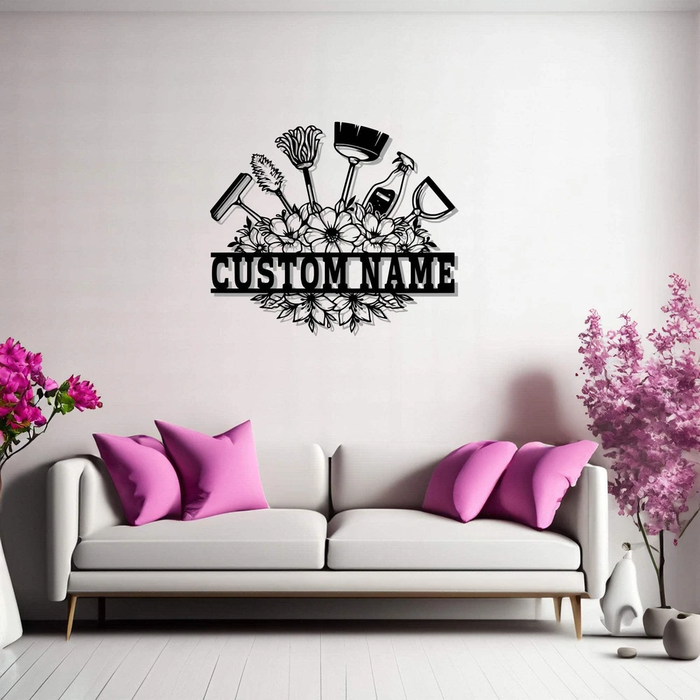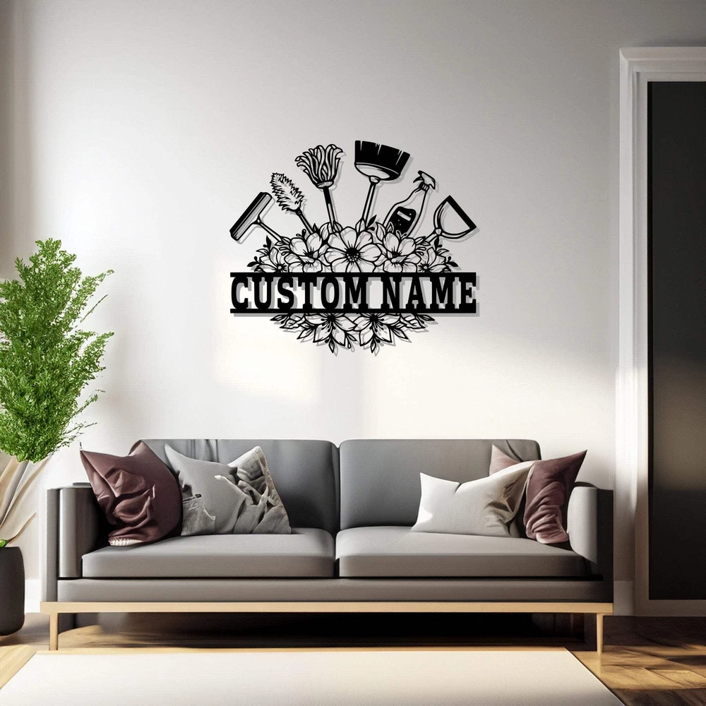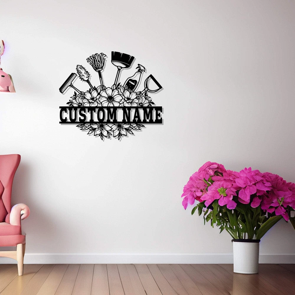 Custom Cleaning Tool Frame Metal Wall Art Personalized Cleaner Name Sign Decorat