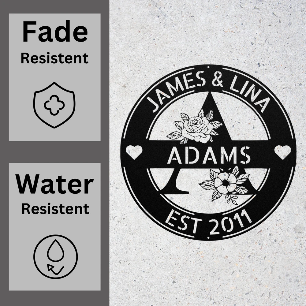 Product Description Custom Couple Metal Sign A to Z Initial Monogram Signs Last Name Family Gift Celebrate love with this Personalized Couple Names Metal Sign , featuring elegant initials and the names of the happy couple. Perfect for newlyweds, anniversaries, or as a thoughtful wedding gift, this custom metal art adds a romantic touch to any home. Key Features: Custom Design: Personalize with the couple’s names and initials for a unique, meaningful keepsake. Premium Craftsmanship: Made from high-quality 16-gauge laser-cut metal and powder-coated for durability and a stylish finish. Versatile Decor: Perfect for indoor or outdoor use – ideal for bedrooms, living rooms, entryways, or patios. Elegant and Timeless: Complements modern, rustic, or traditional decor themes beautifully. Thoughtful Gift: A memorable choice for weddings, engagements, anniversaries, or housewarming celebrations. This Personalized Couple Names Metal Sign is more than just decor – it’s a symbol of love and commitment. Whether for your own home or as a special gift, this custom art piece will be cherished for years to come. Service and Color Choice Our metal signs are designed to be personalized just for you, making them the perfect addition to any space! The default color for our signs is Black , but we also offer a variety of beautiful options including Copper, Gold, White, and Silver . After placing your order, simply contact us with your preferred color choice, and we'll ensure your sign is exactly how you envision it. Let’s create something special together!